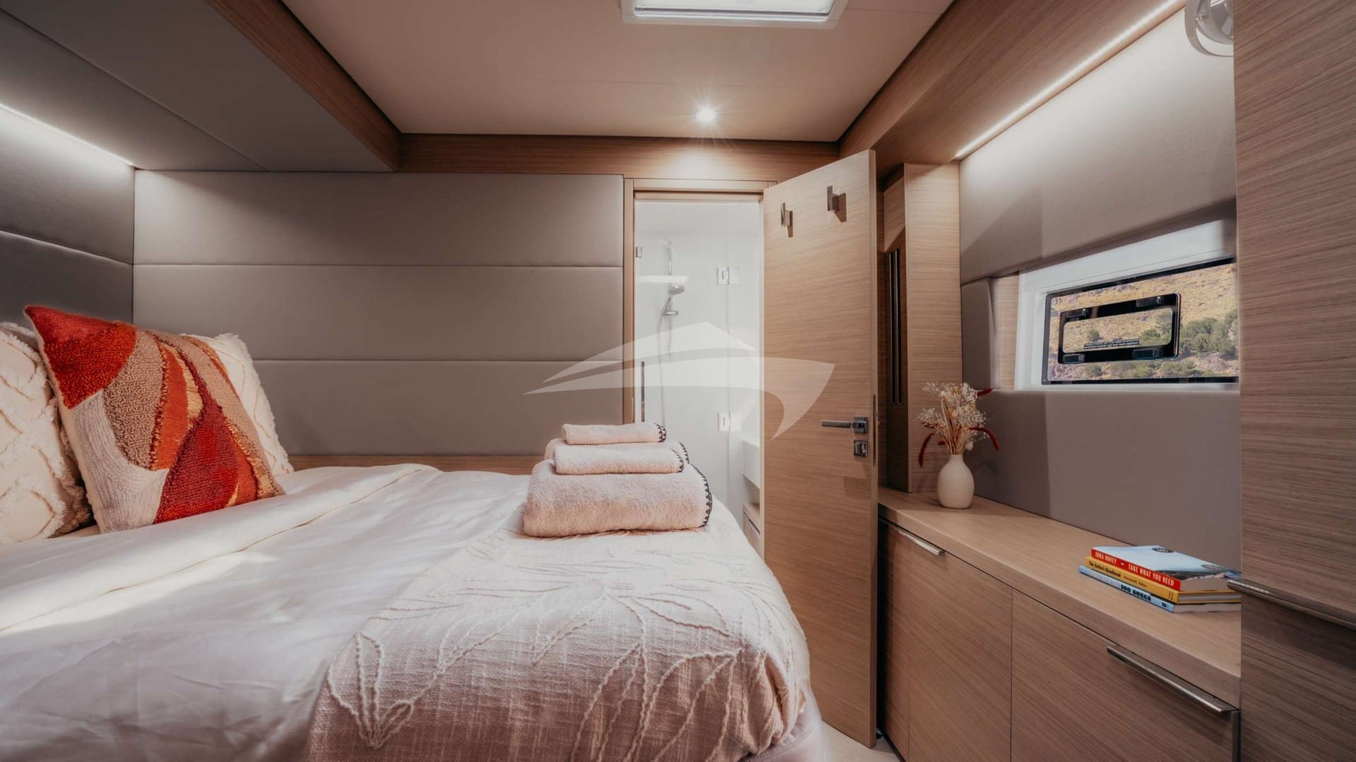 ALMOSTA ROAD has been designed to comfortably accommodate up to 8 charter guests in 4 suites.