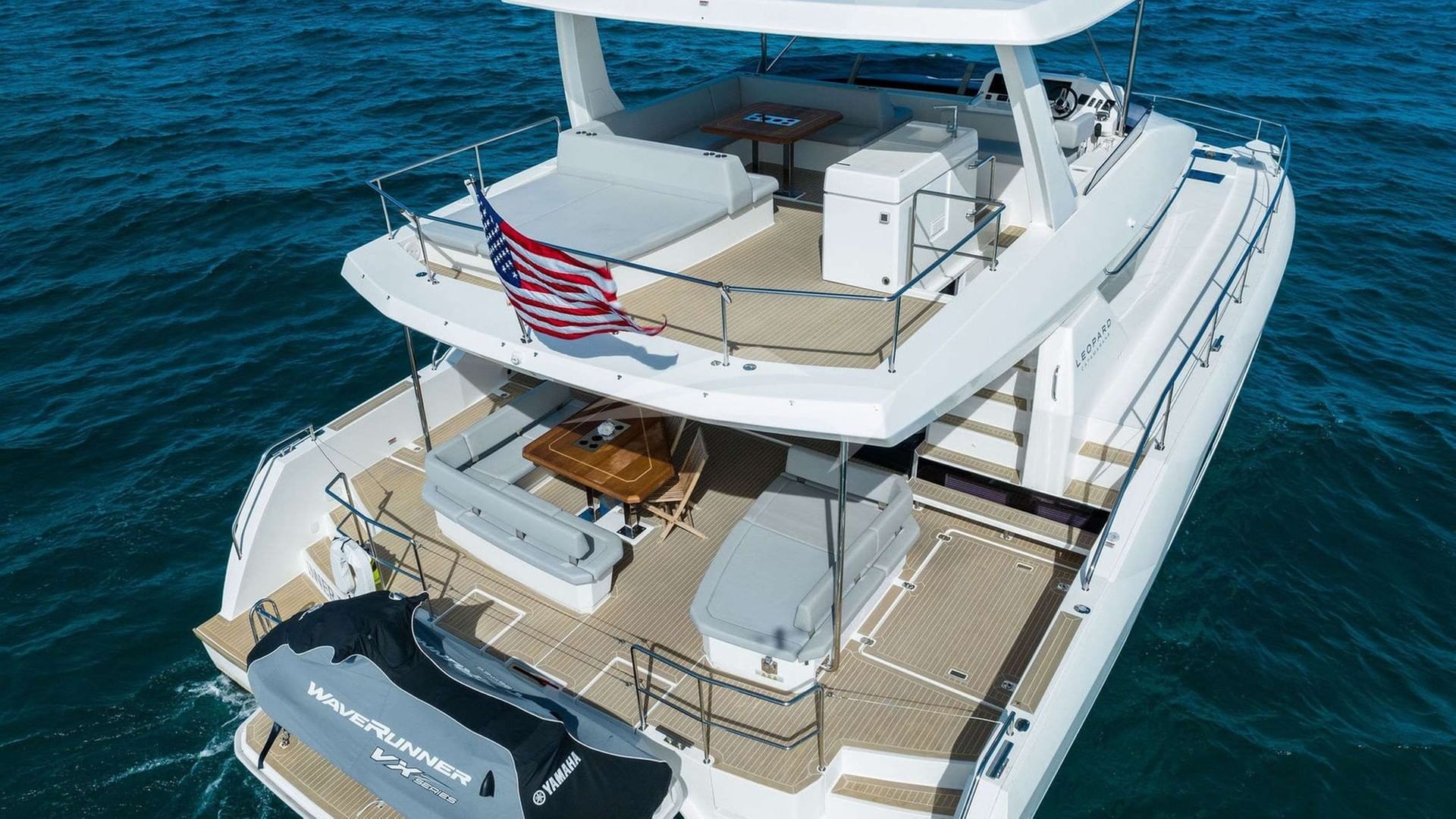 Amenities on board for the charter guests include Air Conditioning, BBQ, Indoor audio system, Swim platform and TV saloon.