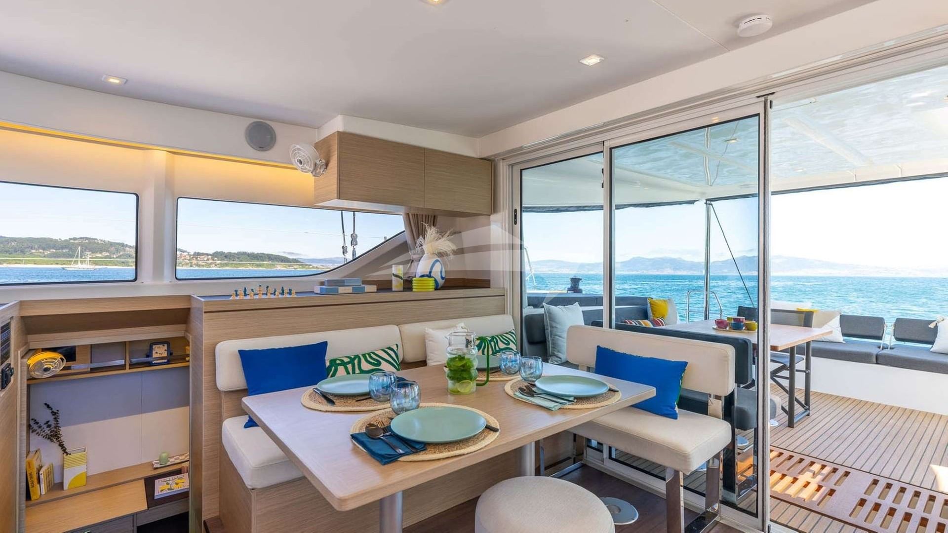 Amenities on board for the charter guests include Air Conditioning, Outdoor shower, Indoor audio system, TV saloon and Wi-Fi.