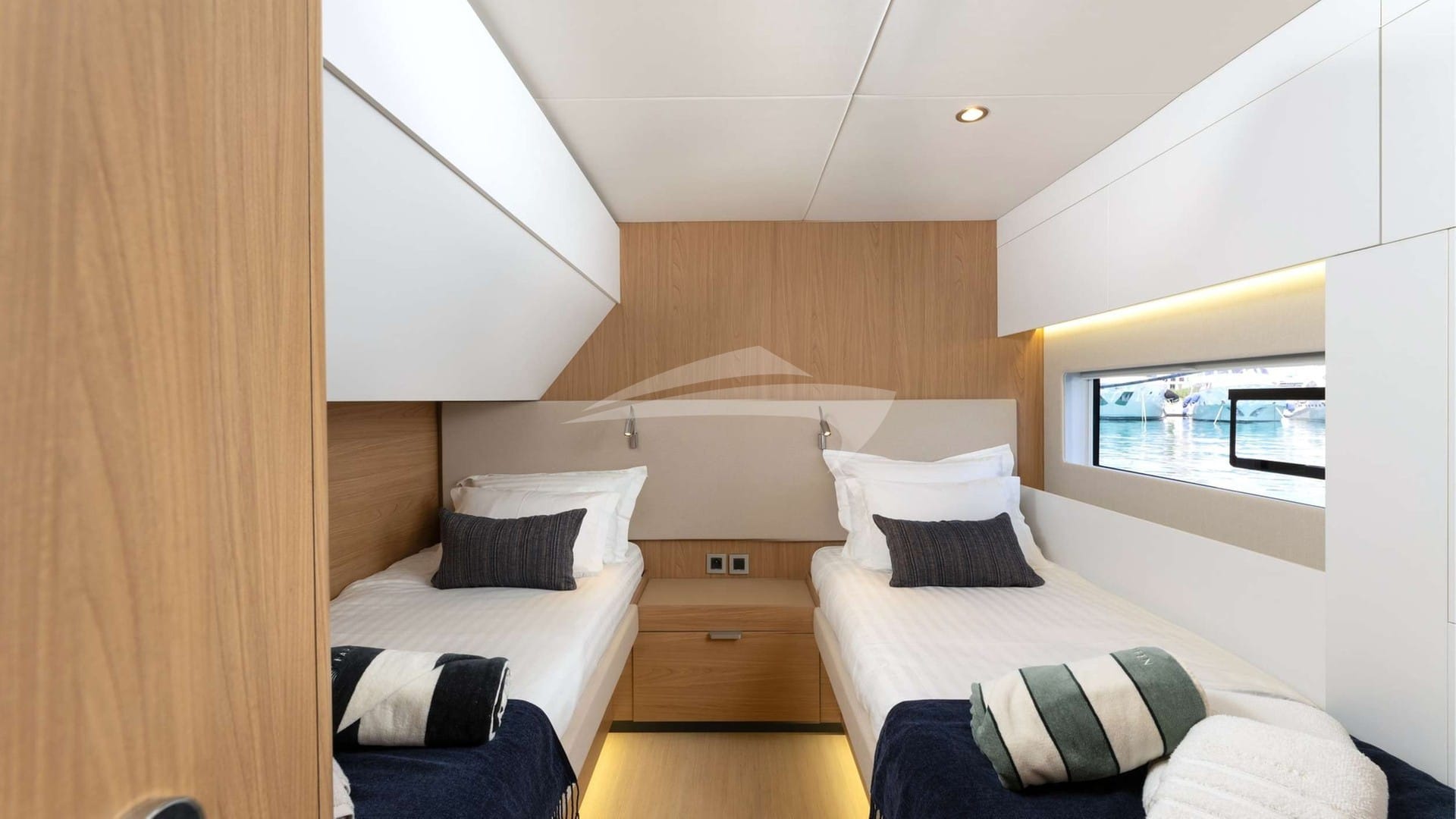 FARBEN can accommodate 8 sleeping guests on board in 4 cabins.