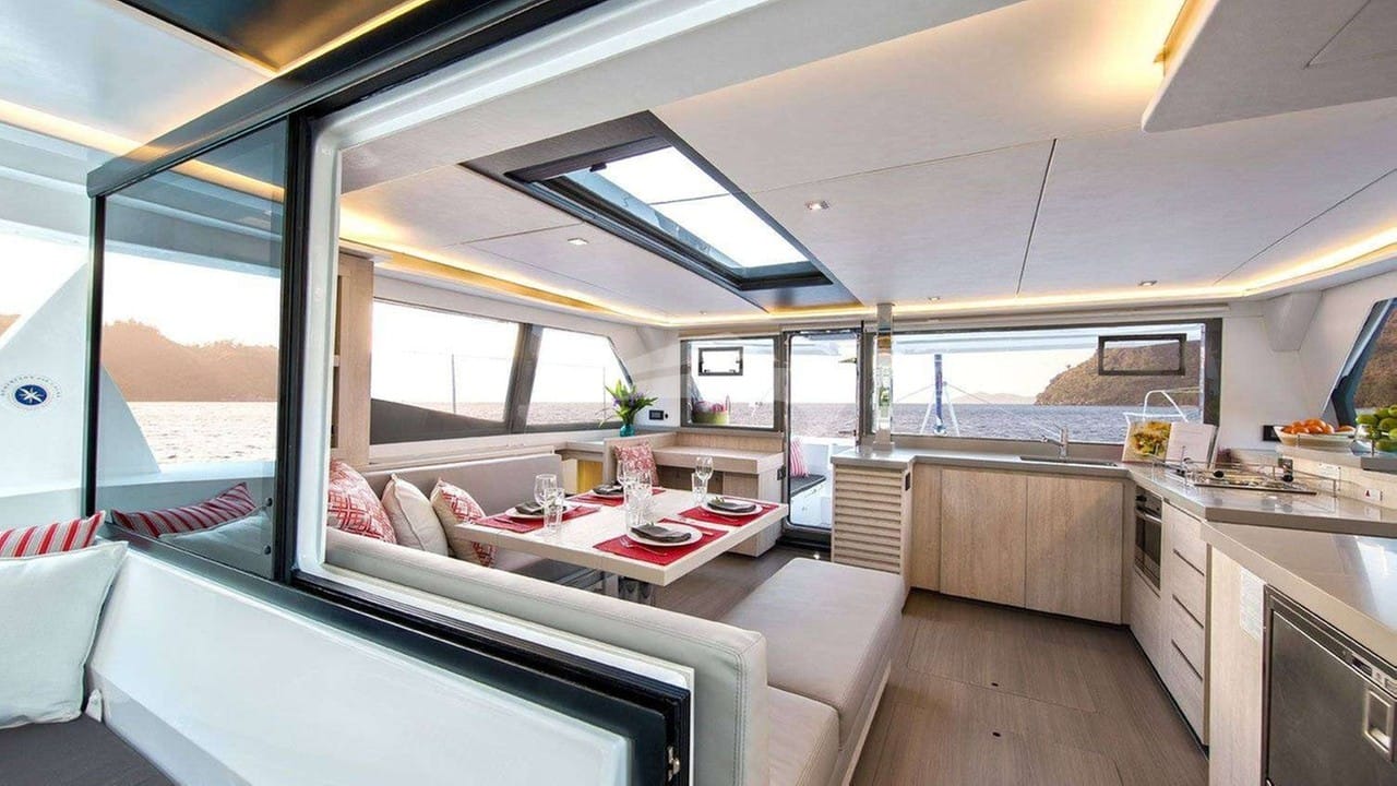 Amenities on board for the charter guests include Air Conditioning, BBQ, Swim platform and Wi-Fi.