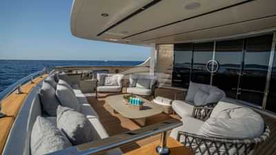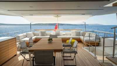 Amenities on board for the charter guests include Air Conditioning, BBQ, Gym, Indoor audio system, Jacuzzi on deck, Satellite TV, Stabilizers At Anchor and TV saloon.