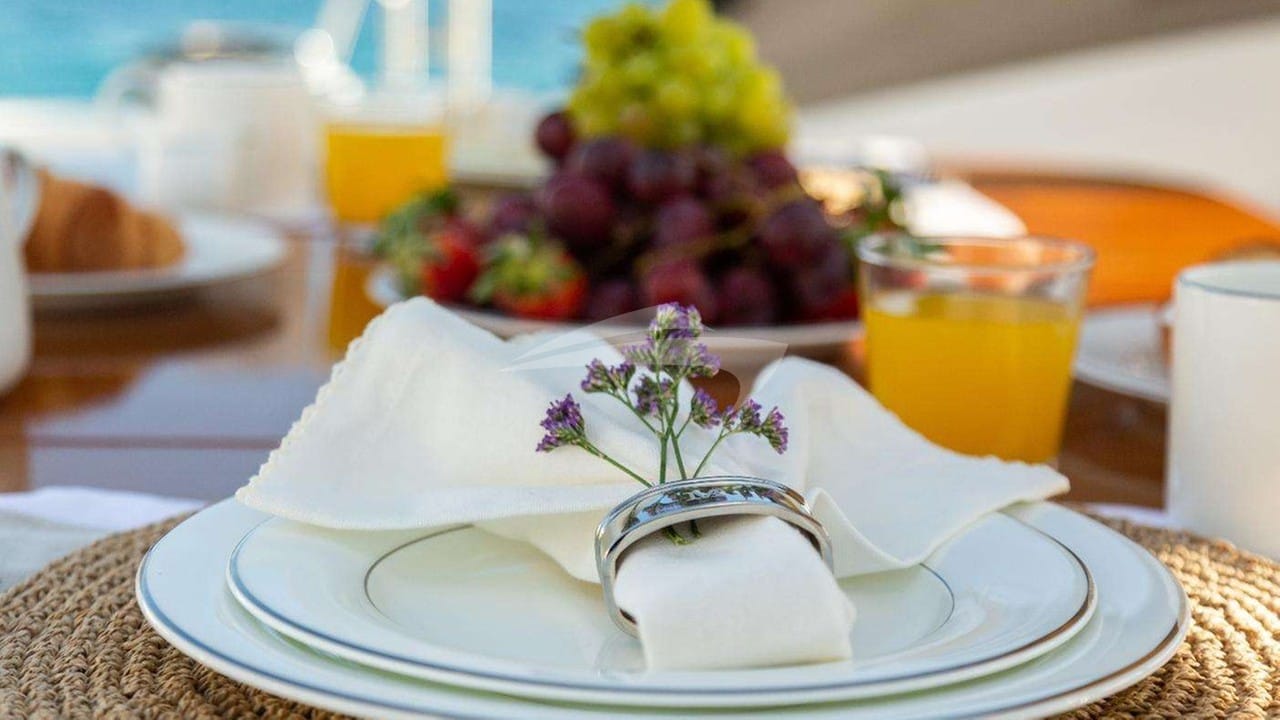 Amenities on board for the charter guests include Air Conditioning, Outdoor shower and TV saloon.