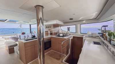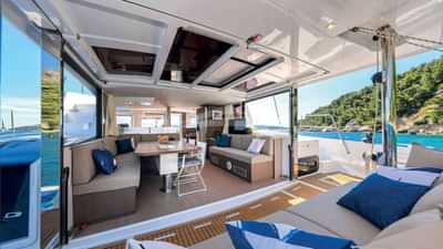 Amenities on board for the charter guests include Air Conditioning, BBQ, Outdoor shower, Indoor audio system, iPod dock, TV saloon and Wi-Fi.
