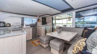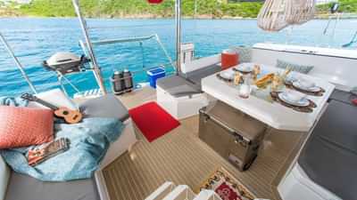 Amenities on board for the charter guests include Air Conditioning, BBQ, Outdoor shower, Light fishing gear, Indoor audio system, iPod dock, Swim platform and Wi-Fi.