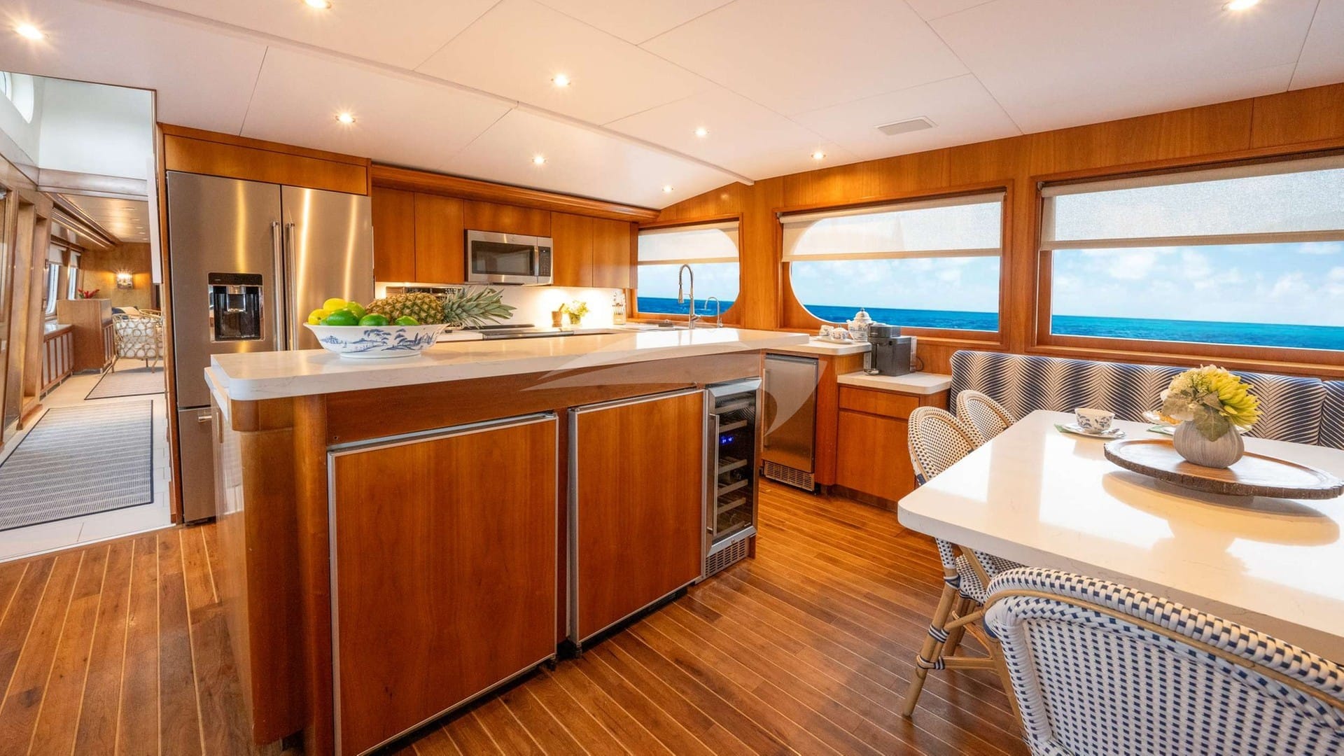 Amenities on board for the charter guests include Air Conditioning, BBQ, Indoor audio system, Jacuzzi on deck, Stabilizers, TV saloon and Wi-Fi.