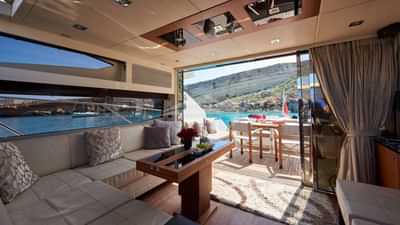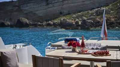 Amenities on board for the charter guests include Air Conditioning, BBQ, Outdoor shower, Indoor audio system, iPod dock, Swim platform, TV saloon and Wi-Fi.