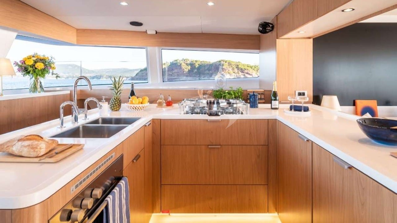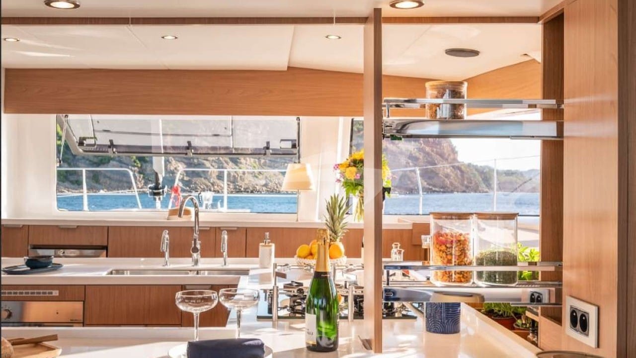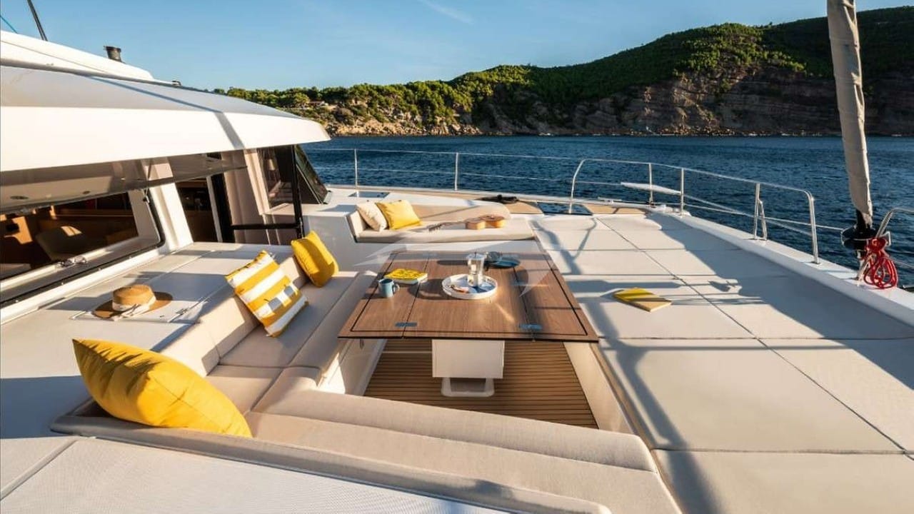 Amenities on board include Air Conditioning, BBQ, Outdoor shower, Indoor audio system, iPod dock, TV saloon and Wi-Fi.