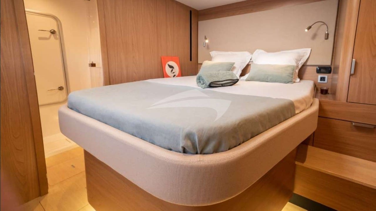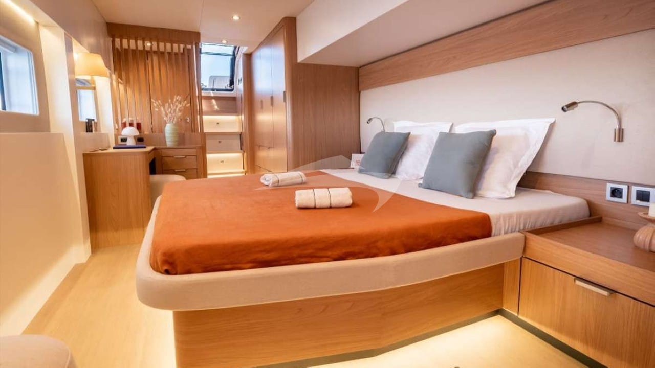 DREAM ON can accommodate 8 guests in 4 cabins consisting of a primary suite with a queen size bed and en-suite bathroom facilities and 3 cabins with a queen size bed and en-suite bathroom facilities.