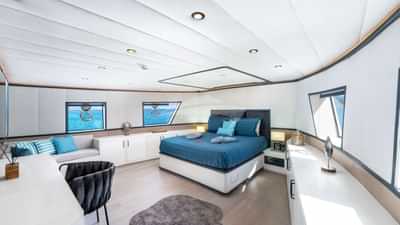 CALM DOWN has been designed to comfortably accommodate up to 12 charter guests in 6 suites.