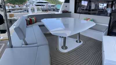 Amenities on board for the charter guests include Air Conditioning, BBQ, Outdoor shower, Big game fishing gear, Indoor audio system, iPod dock, Swim platform, TV saloon and Wi-Fi.