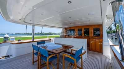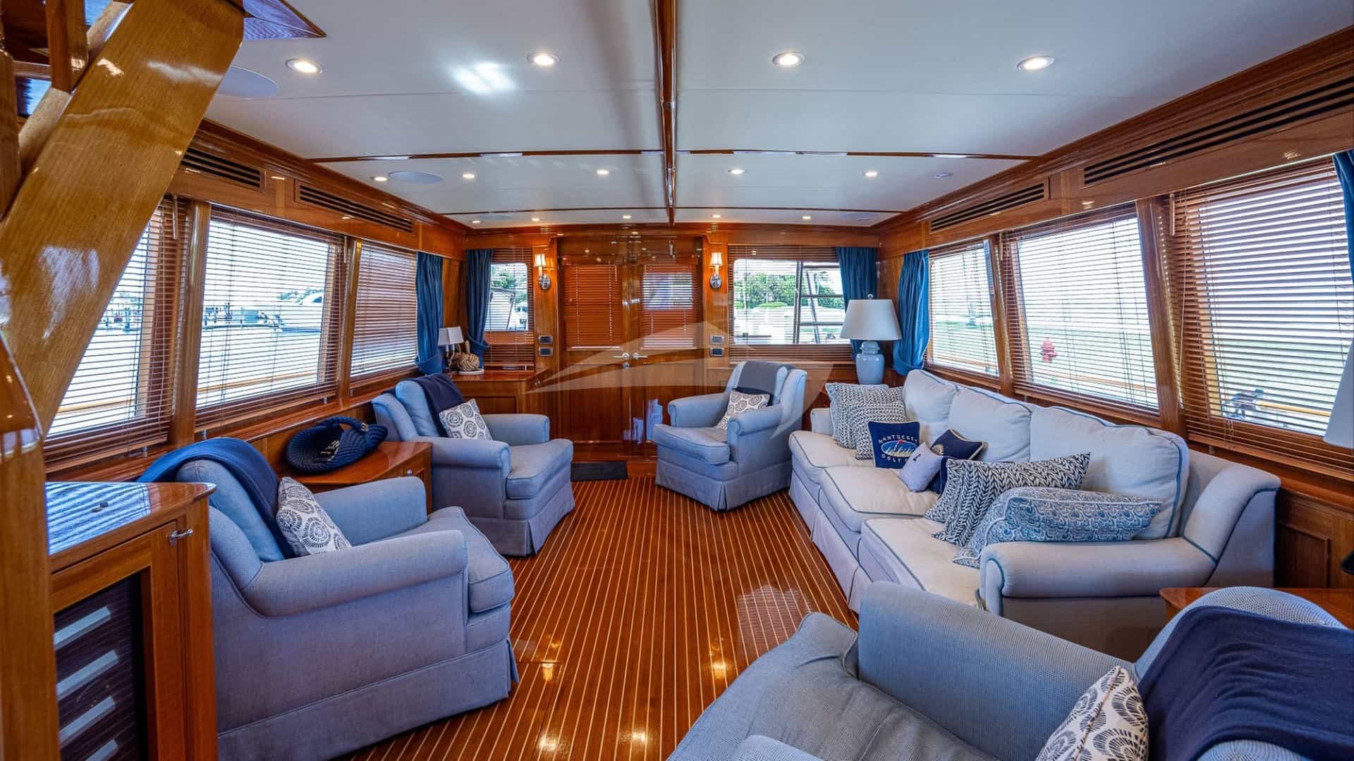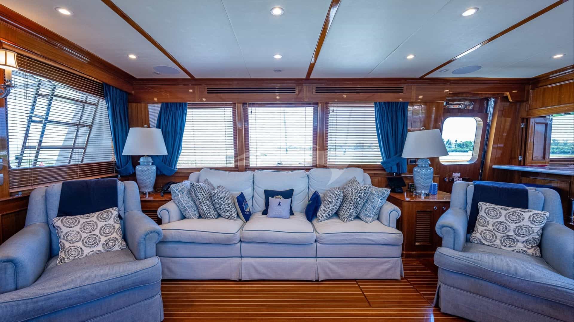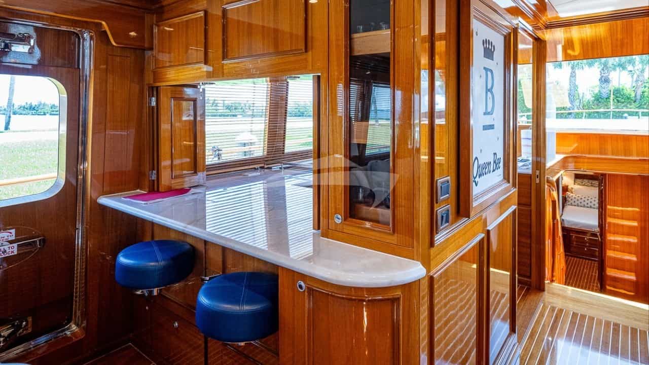 Amenities on board for the charter guests include BBQ, Ice maker, Stabilizers, Sun Deck, Swim platform, TV all cabins, TV saloon, Walkaround Bridge, Water maker and Wi-Fi.