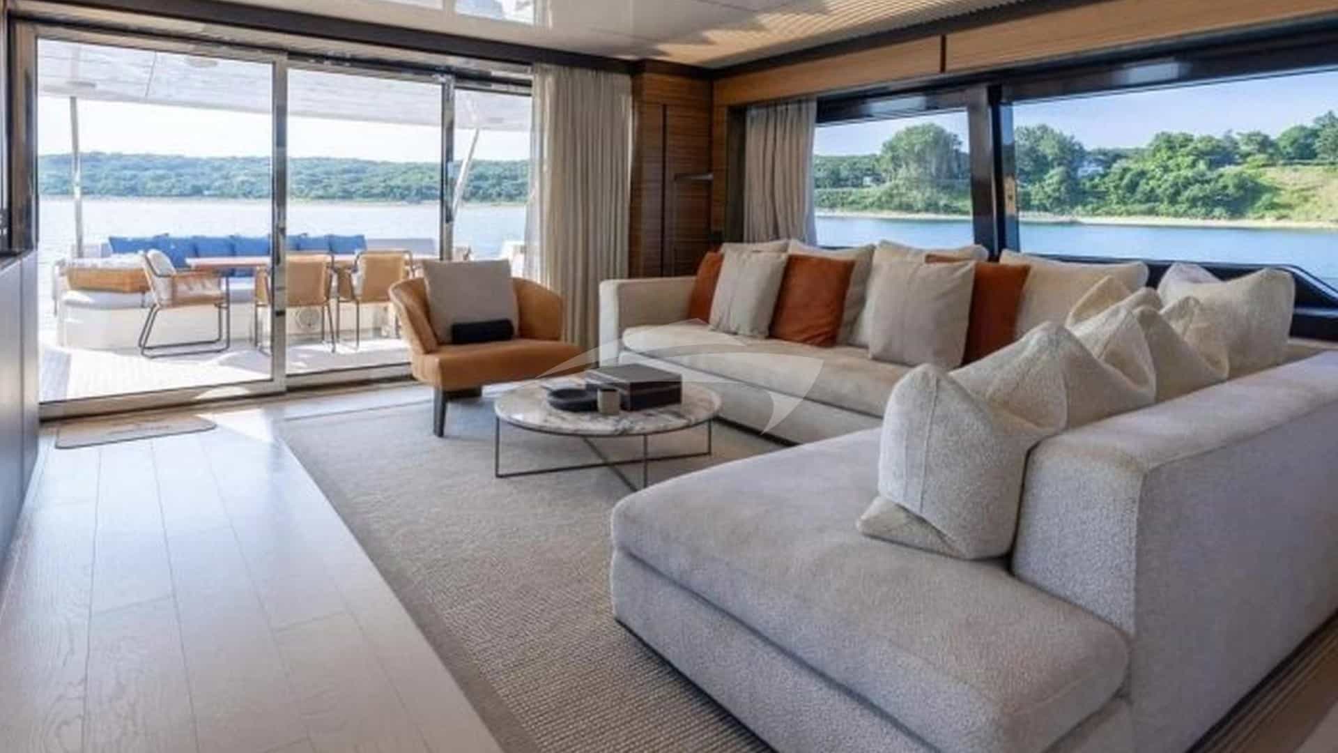 Amenities on board for the charter guests include Air Conditioning, Light fishing gear, Indoor audio system, Outdoor Bar, Stabilizers, Stabilizers At Anchor, Starlink Satellite Internet, Sun pads, Sun Deck, Sun loungers, Swim platform and Wi-Fi.