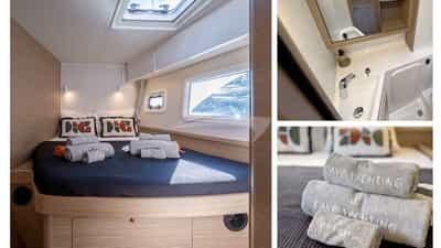 INCA can accommodate 8 sleeping guests on board in 4 cabins.
