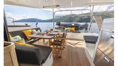 Amenities on board for the charter guests include Air Conditioning, Outdoor shower, Indoor audio system and Wi-Fi.