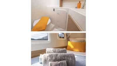 LUNA can accommodate 6 sleeping guests on board in 3 cabins.