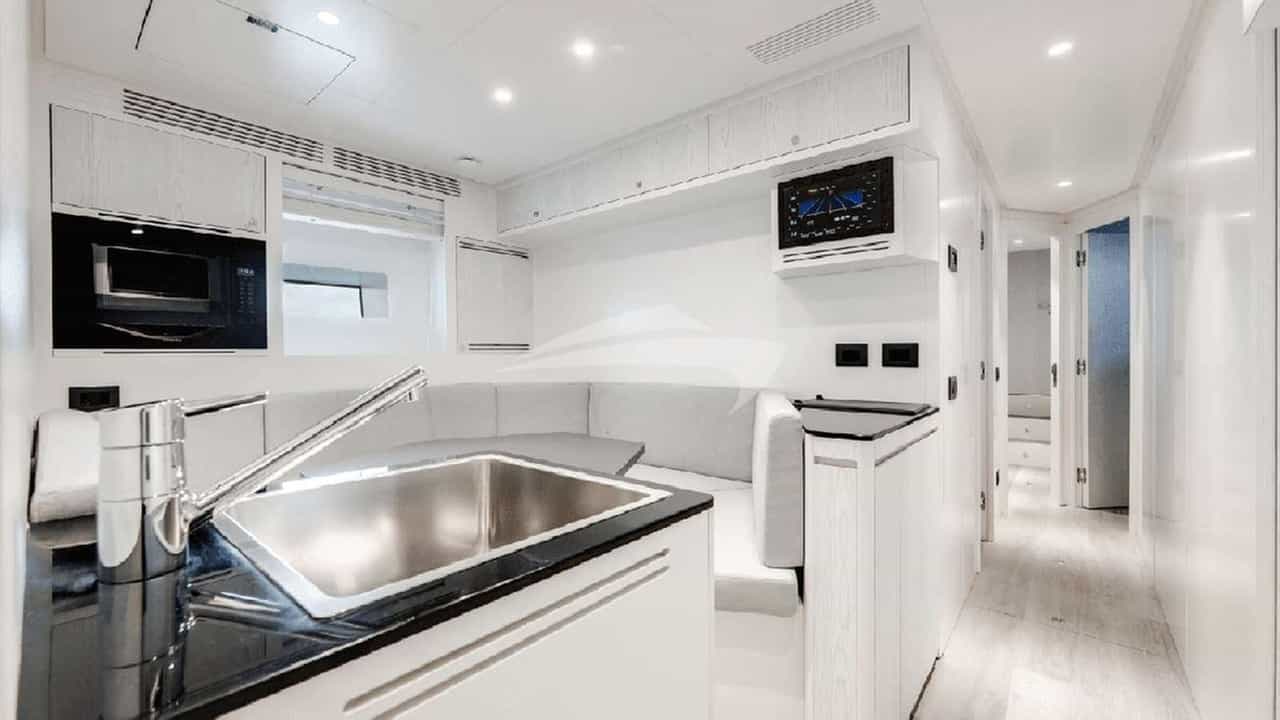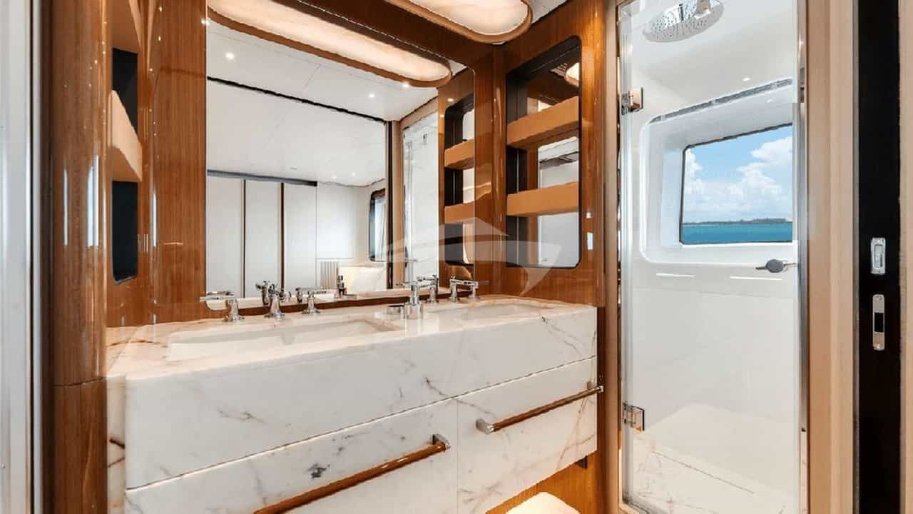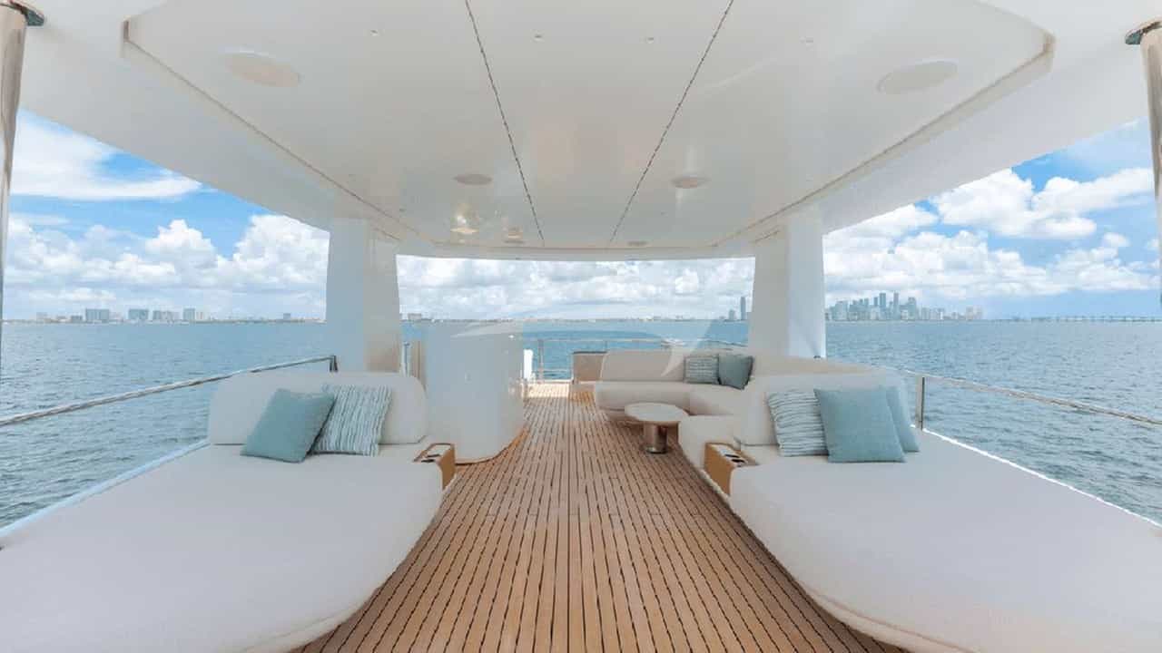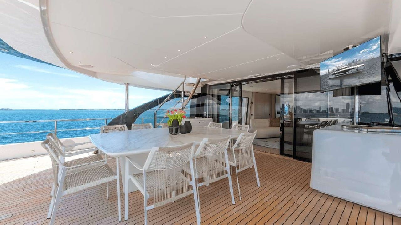 Amenities on board for the charter guests include Air Conditioning, BBQ, Outdoor shower, Indoor audio system, Jacuzzi on deck, Satellite TV, Stabilizers At Anchor, Swim platform, TV saloon and Wi-Fi.