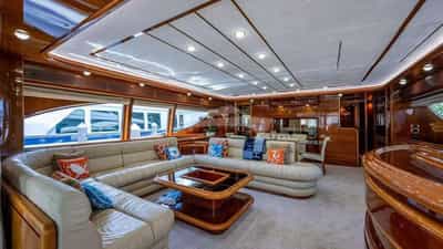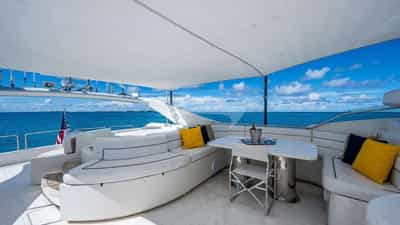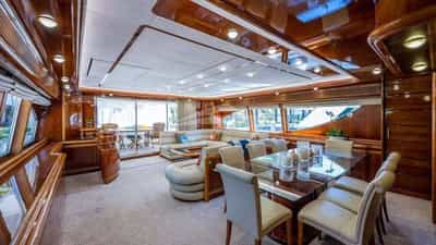 Amenities on board for the charter guests include Air Conditioning, BBQ, Outdoor shower, Indoor audio system, Jacuzzi on deck, Satellite TV, Swim platform, TV saloon and Wi-Fi.