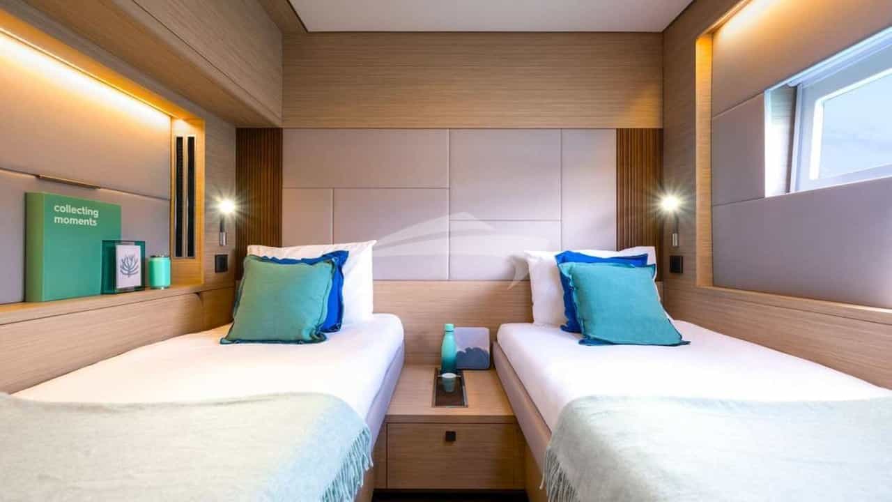 MINTED ONE can accommodate 8 guests in 4 cabins consisting of a primary suite with a queen size bed and en-suite bathroom facilities and 3 cabins with a queen size bed and en-suite bathroom facilities.