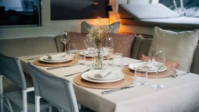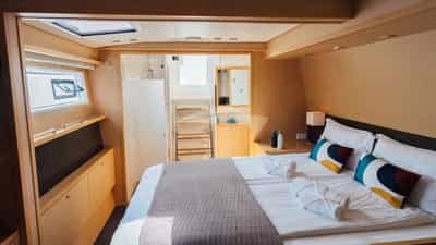 BAZA can accommodate 6 sleeping guests on board in 3 cabins.