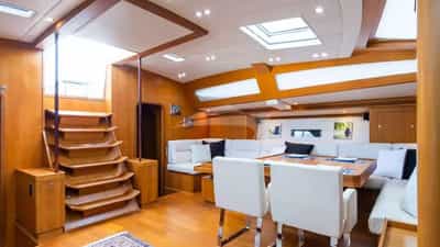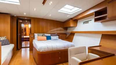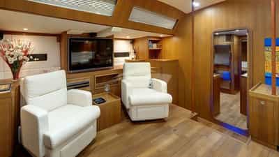 Amenities on board for the charter guests include Air Conditioning, Indoor audio system, TV saloon and Wi-Fi.