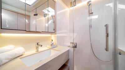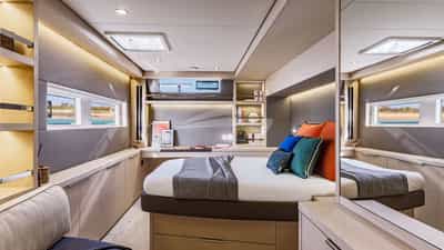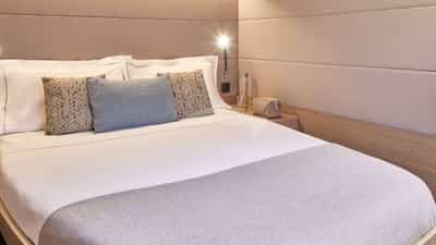 LADY M can accommodate 8 sleeping guests on board in 6 cabins.