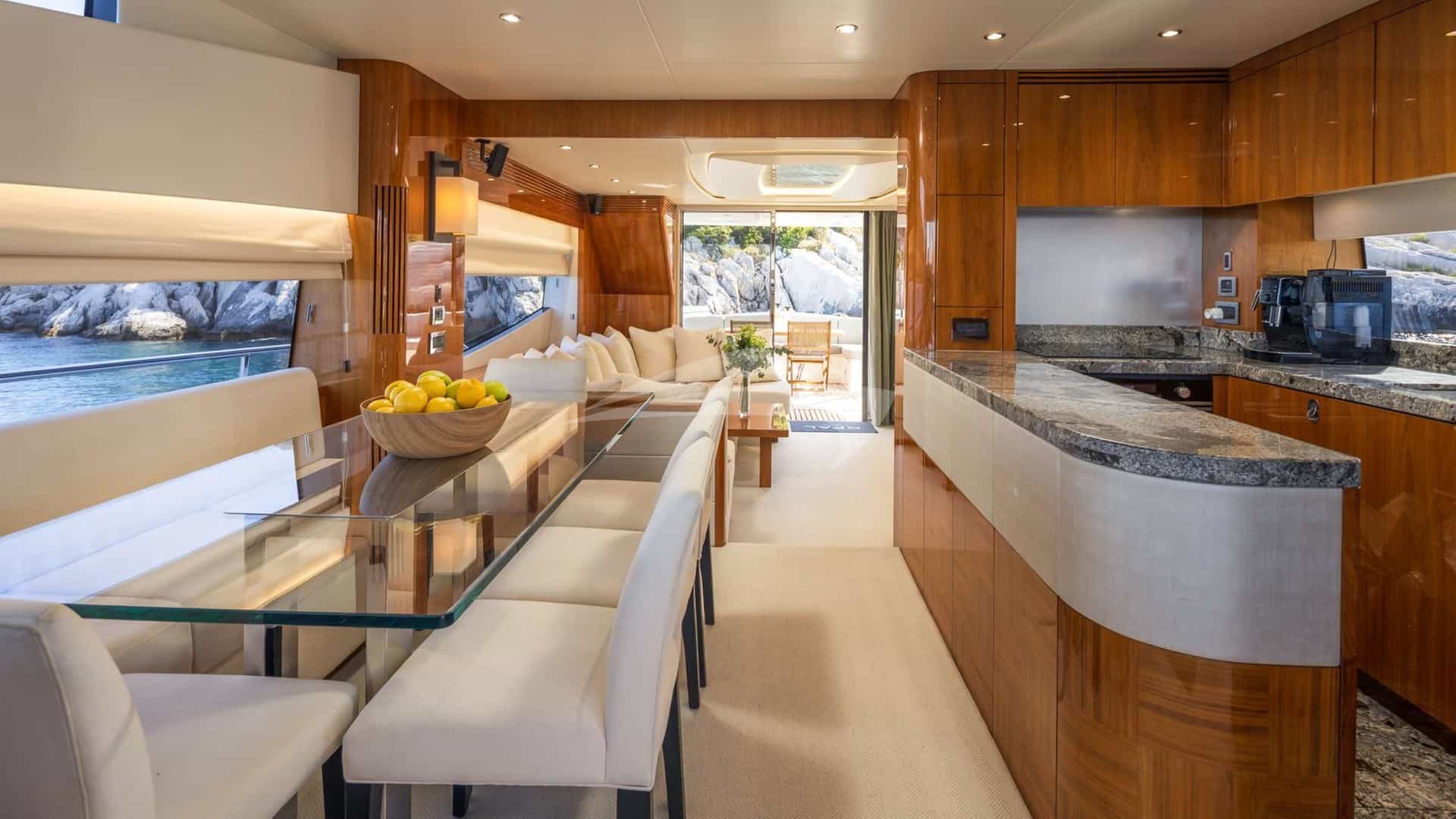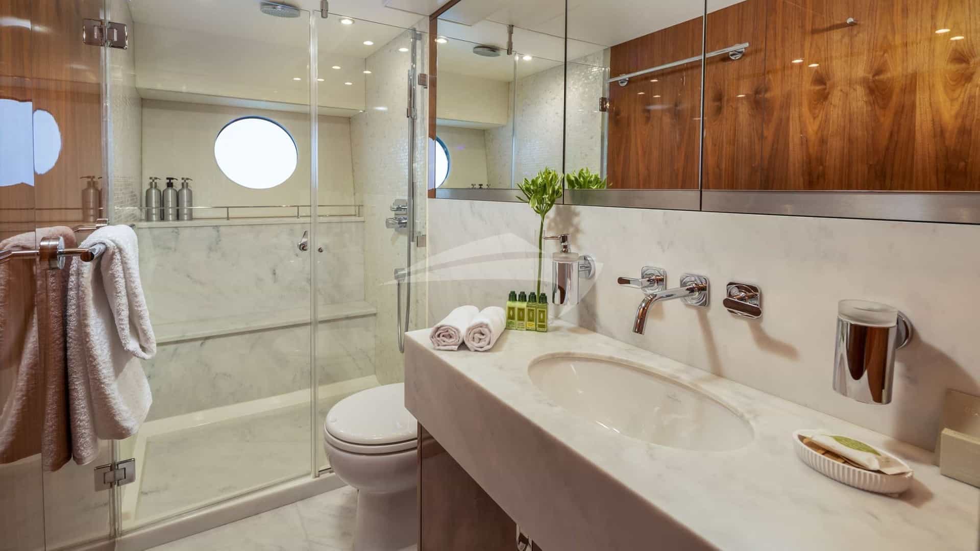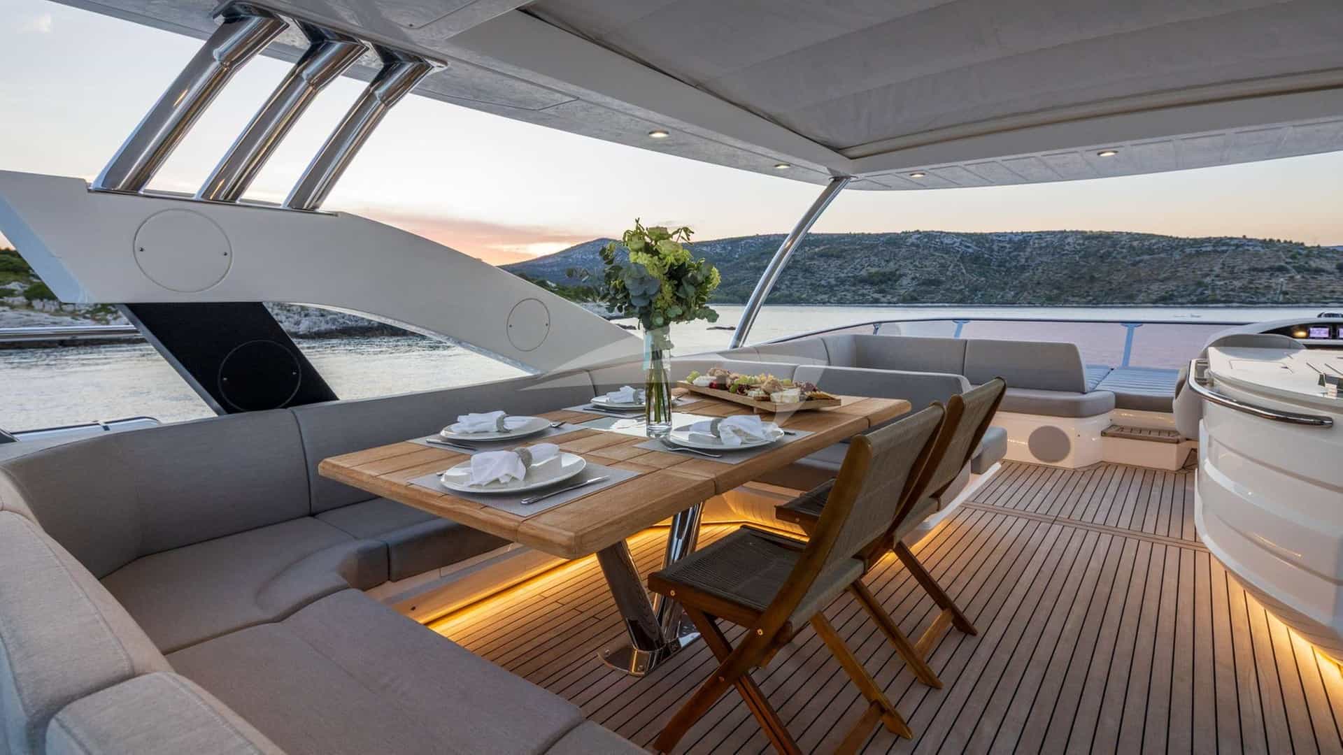 Amenities on board for the charter guests include Air Conditioning, Outdoor shower, Indoor audio system, iPod dock, TV saloon and Wi-Fi.