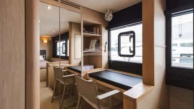 L'INDECIS can accommodate 6 sleeping guests on board in 3 cabins.