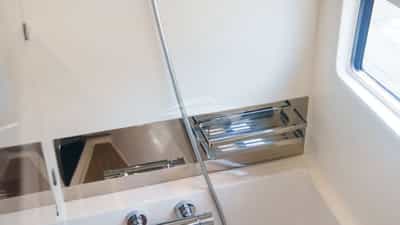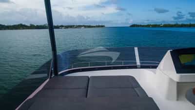 Amenities on board for the charter guests include Air Conditioning, Outdoor shower, Indoor audio system, iPod dock and Swim platform.