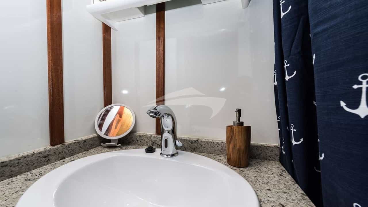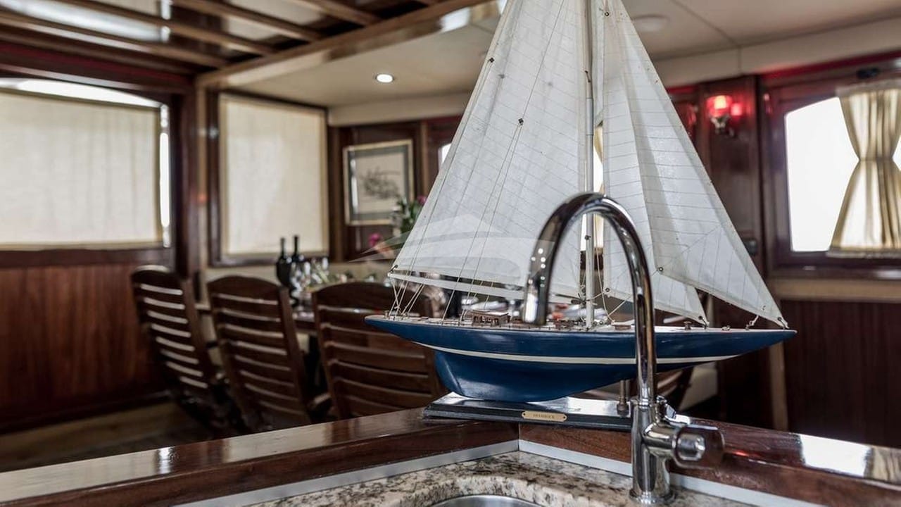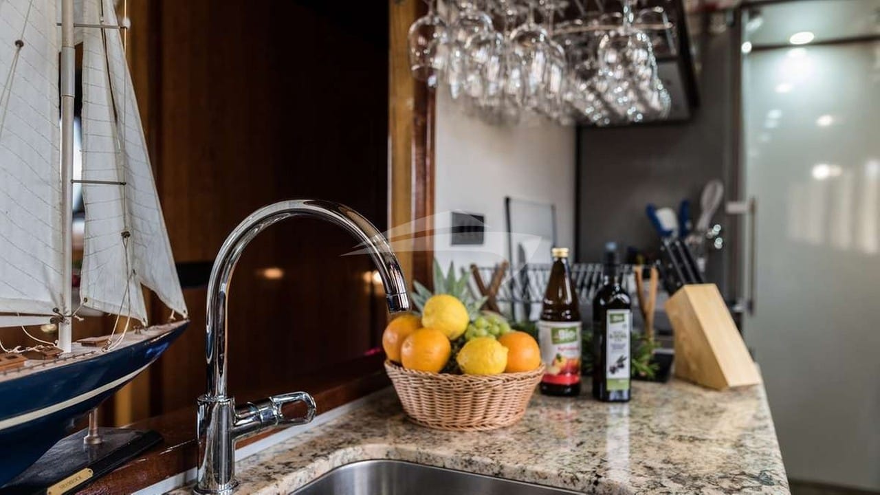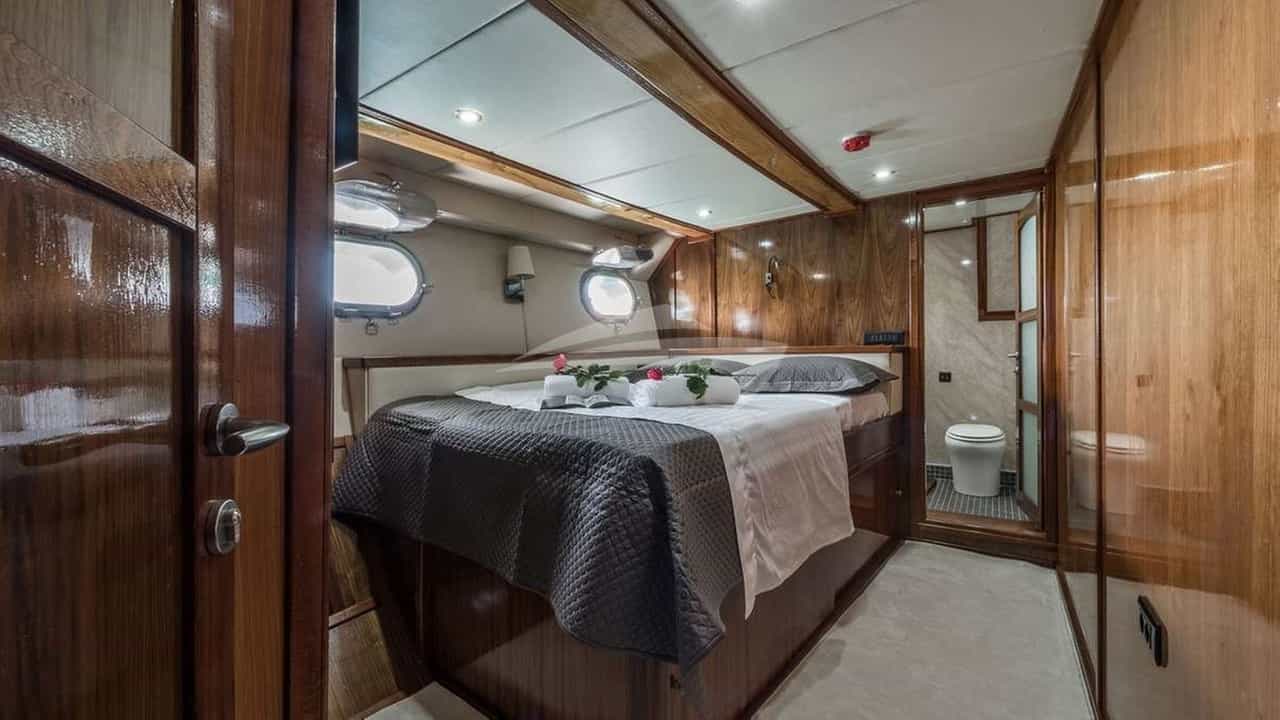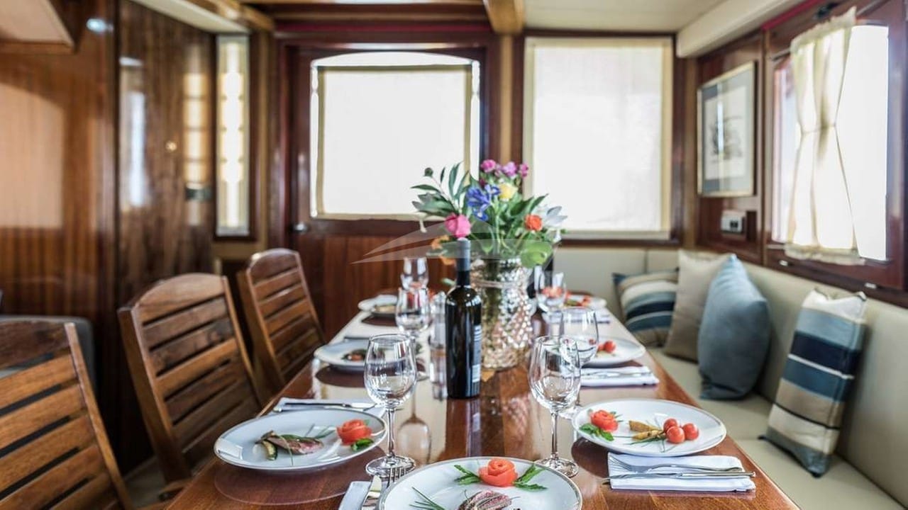 Amenities on board for the charter guests include Air Conditioning, BBQ, Outdoor shower, Indoor audio system, iPod dock, Satellite TV, Swim platform, TV saloon and Wi-Fi.