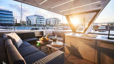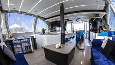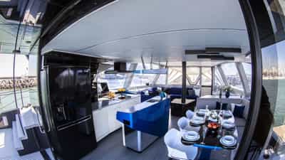 Amenities on board for the charter guests include Air Conditioning, Outdoor shower, Indoor audio system, iPod dock, TV saloon and Wi-Fi.
