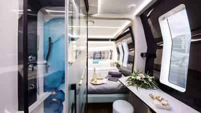 WAVE can accommodate 8 sleeping guests on board in 4 cabins.