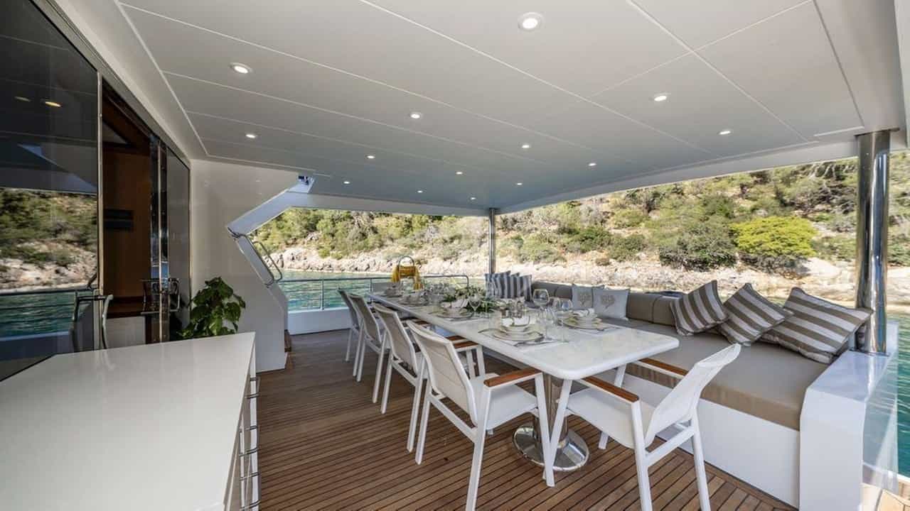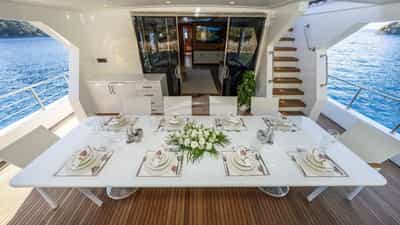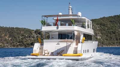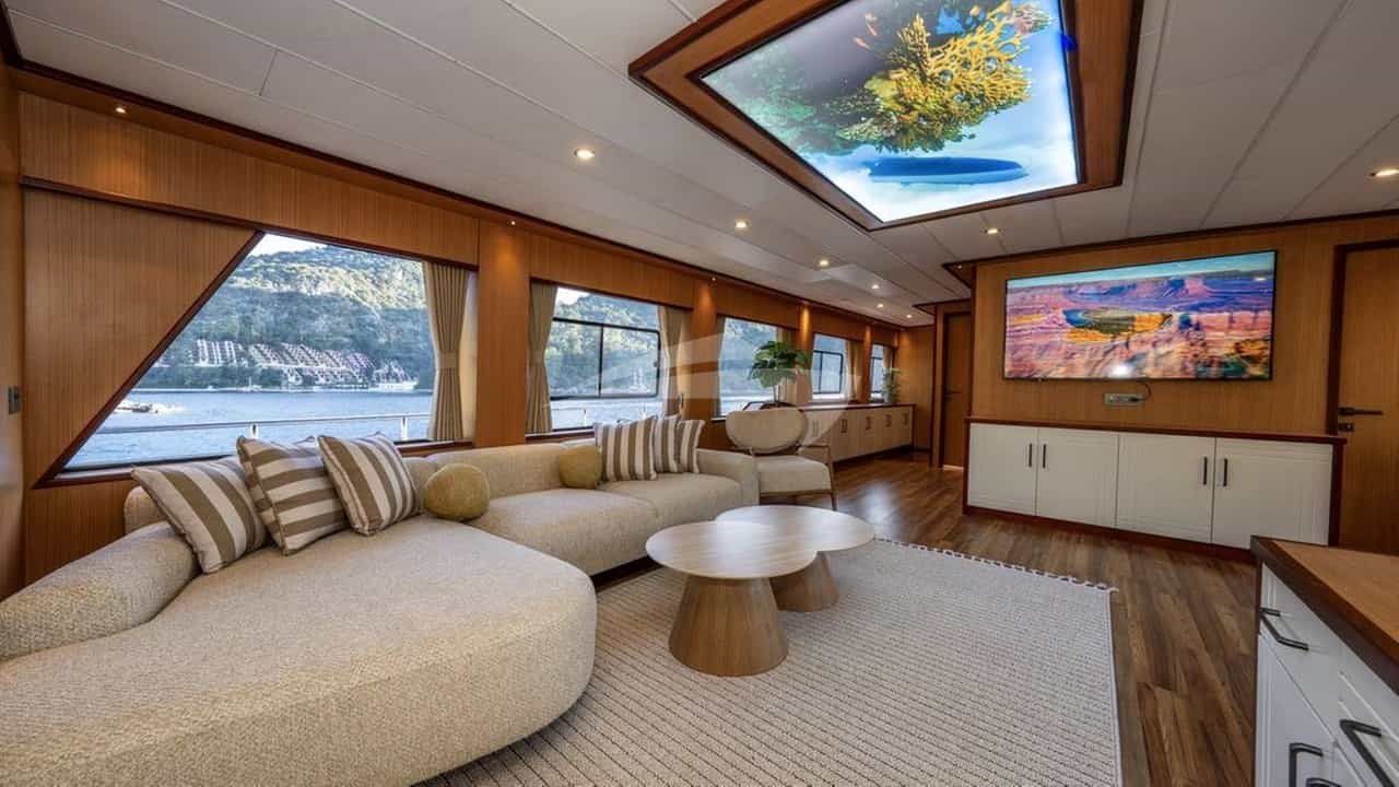 Amenities on board for the charter guests include Air Conditioning, Indoor audio system, iPod dock and TV saloon.