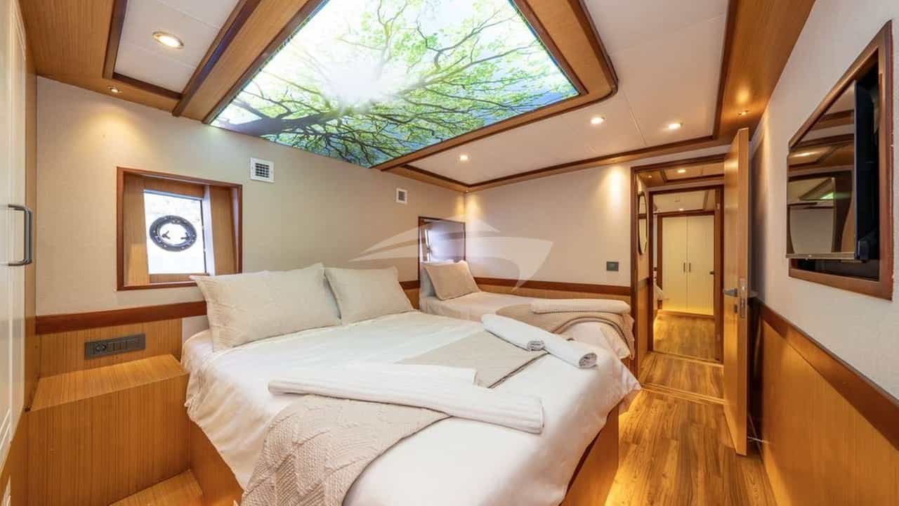 LILA TRAWLER can accommodate 14 sleeping guests on board in 5 cabins.