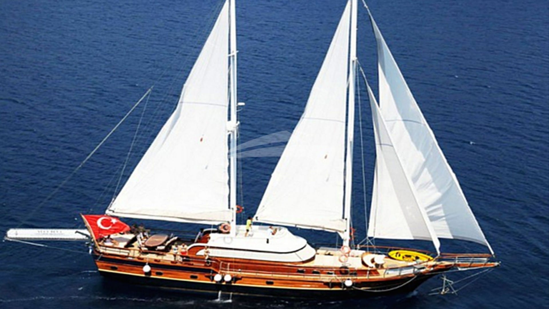 The 79ft / 24m YUCE BEY 1 has been constructed with a wood hull and is powered by 2x IVECO engines at 280hp each with a cruising speed of 10 knots.