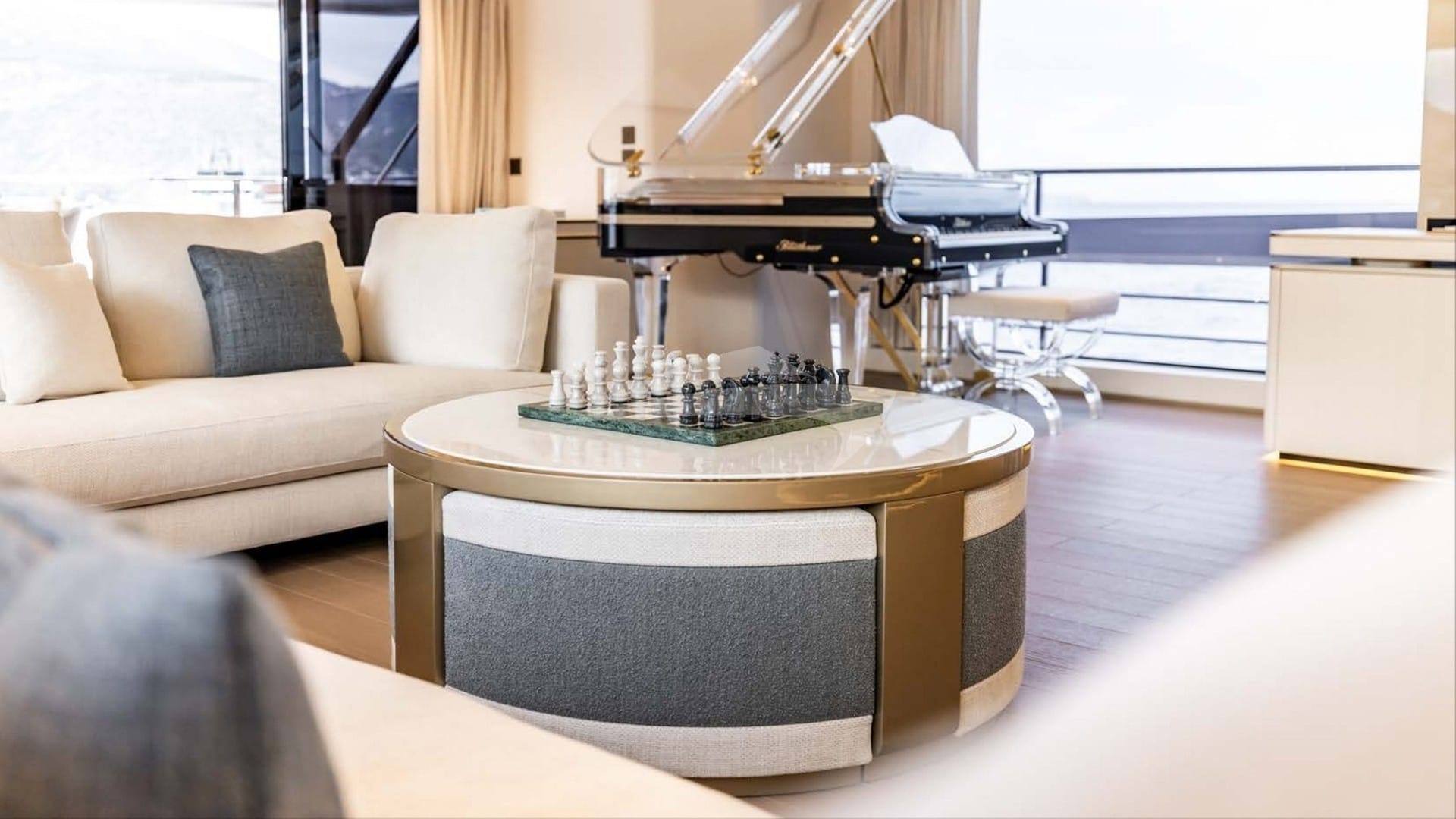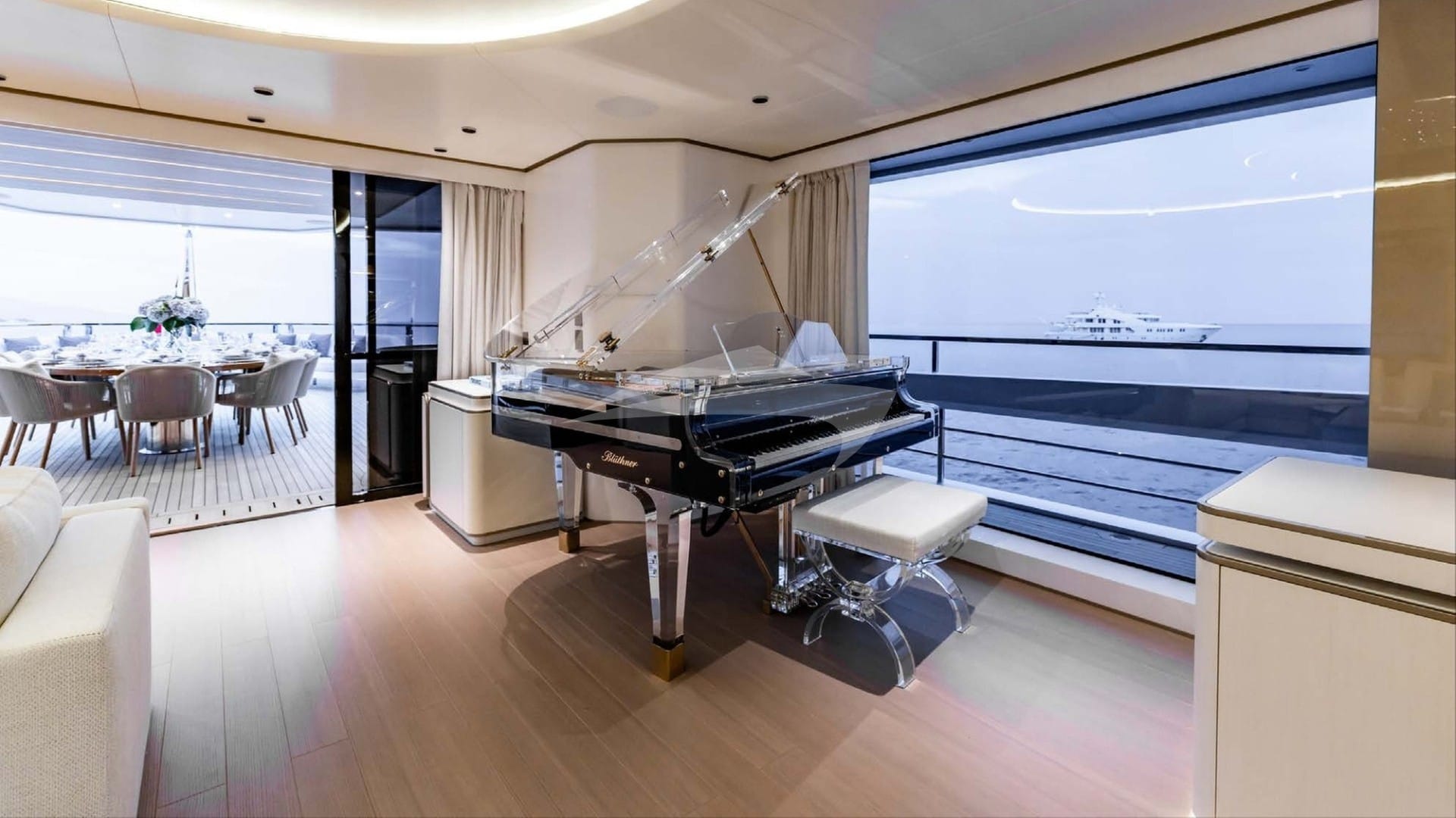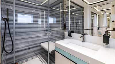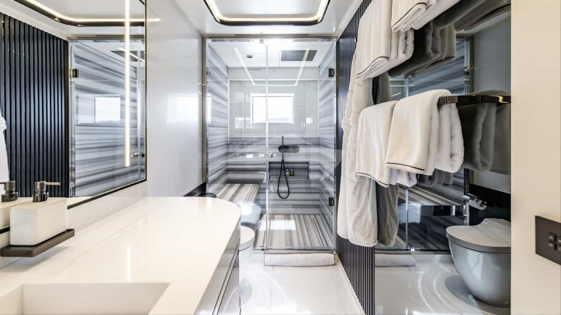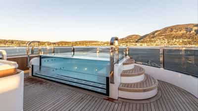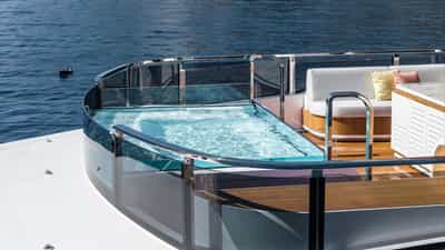 Amenities on board for the charter guests include Air Conditioning, Beach club, Gym, Jacuzzi on deck, Steam room, Swimming pool and Wi-Fi.