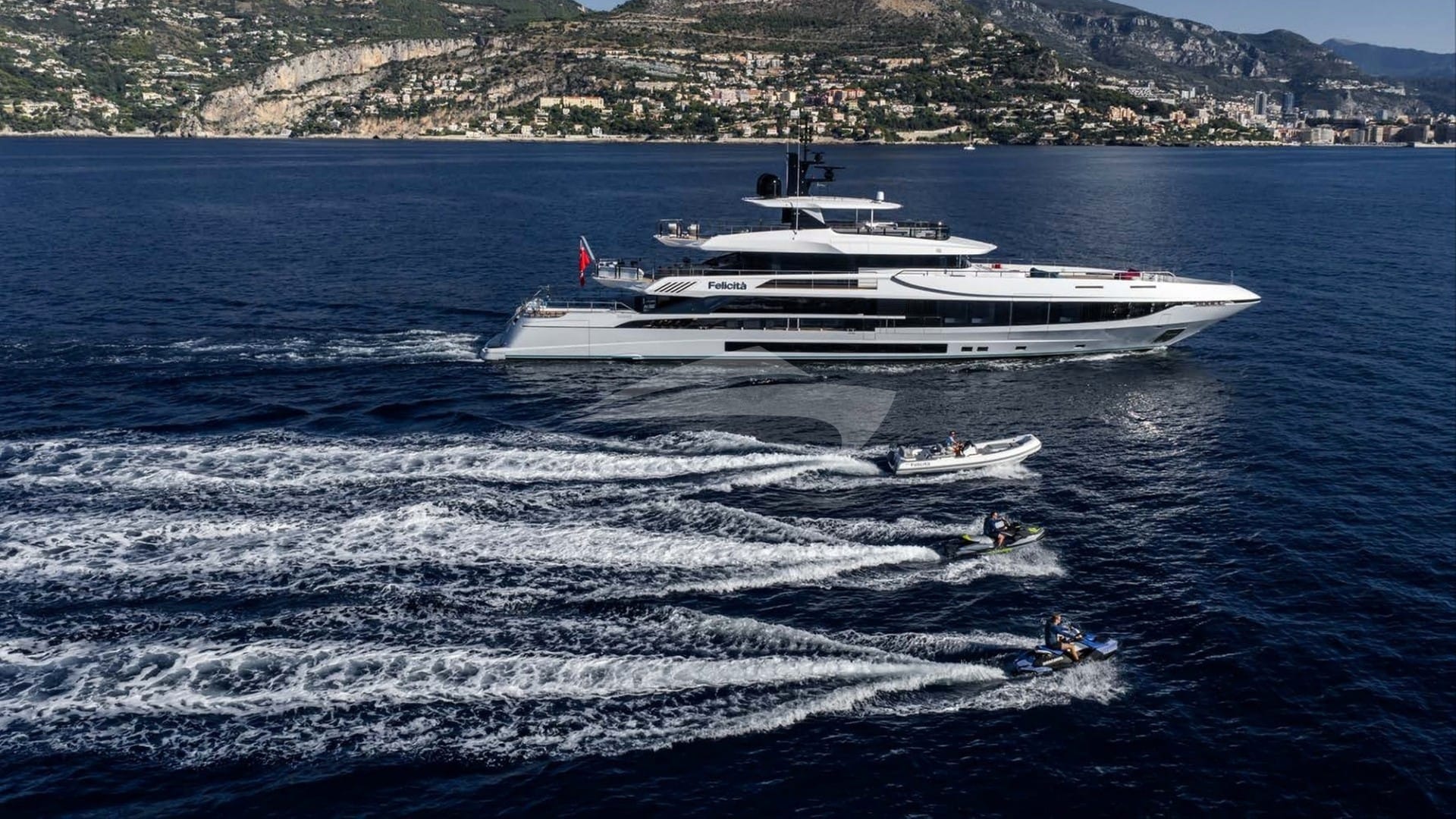 The luxury motor yacht FELICITA was built by Mangusta (Overmarine) and delivered to her owner in 2025.