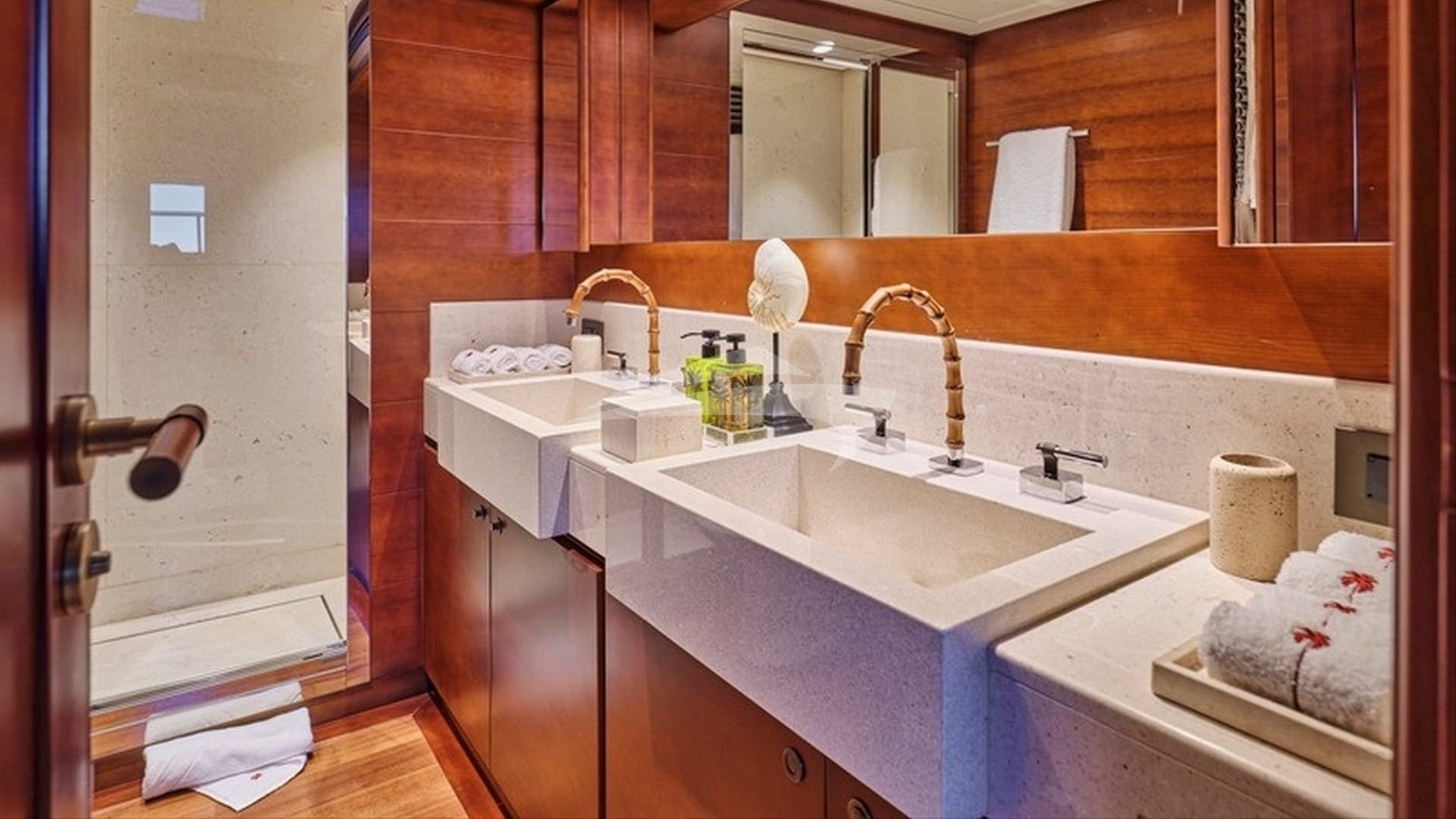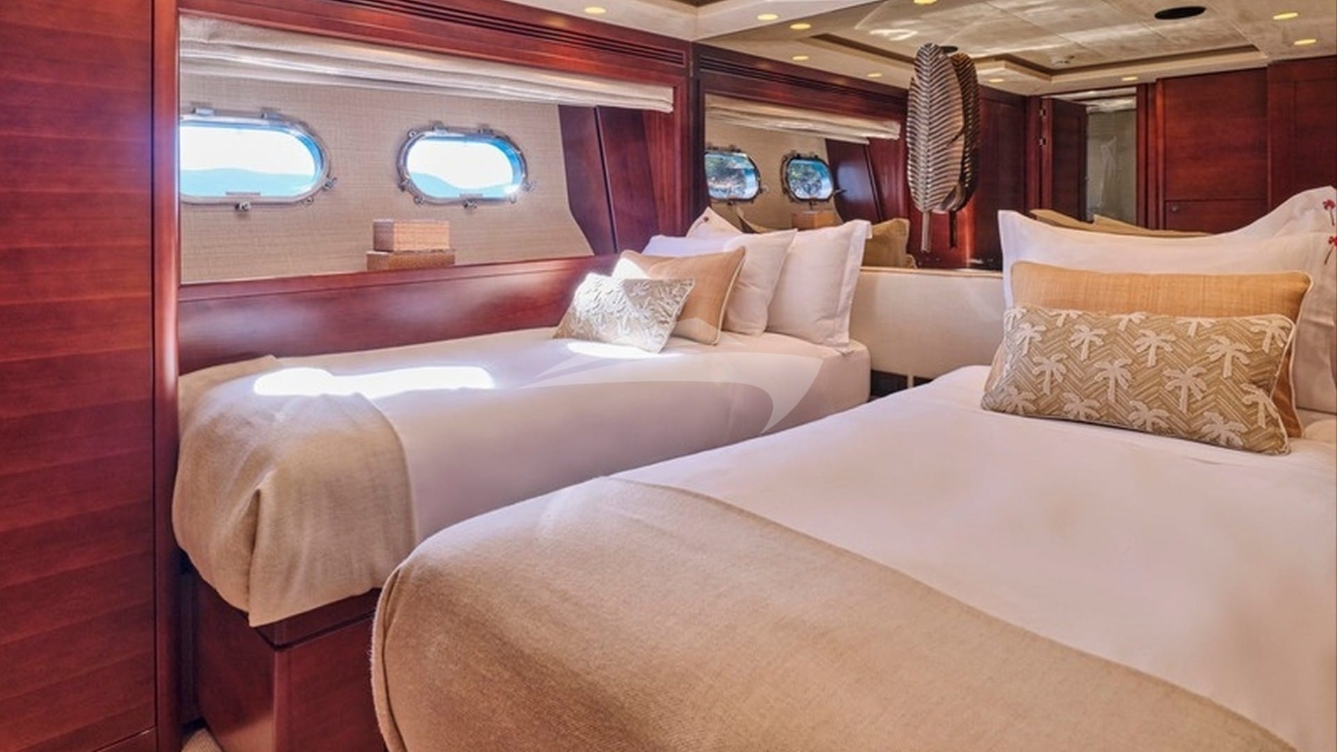 The guest cabins comprise a primary suite with a king size bed and en-suite bathroom facilities, 2 VIP suites with a king size bed and en-suite bathroom facilities, a cabin with a double bed and en-suite bathroom facilities and a cabin with a twin bed and en-suite bathroom facilities.