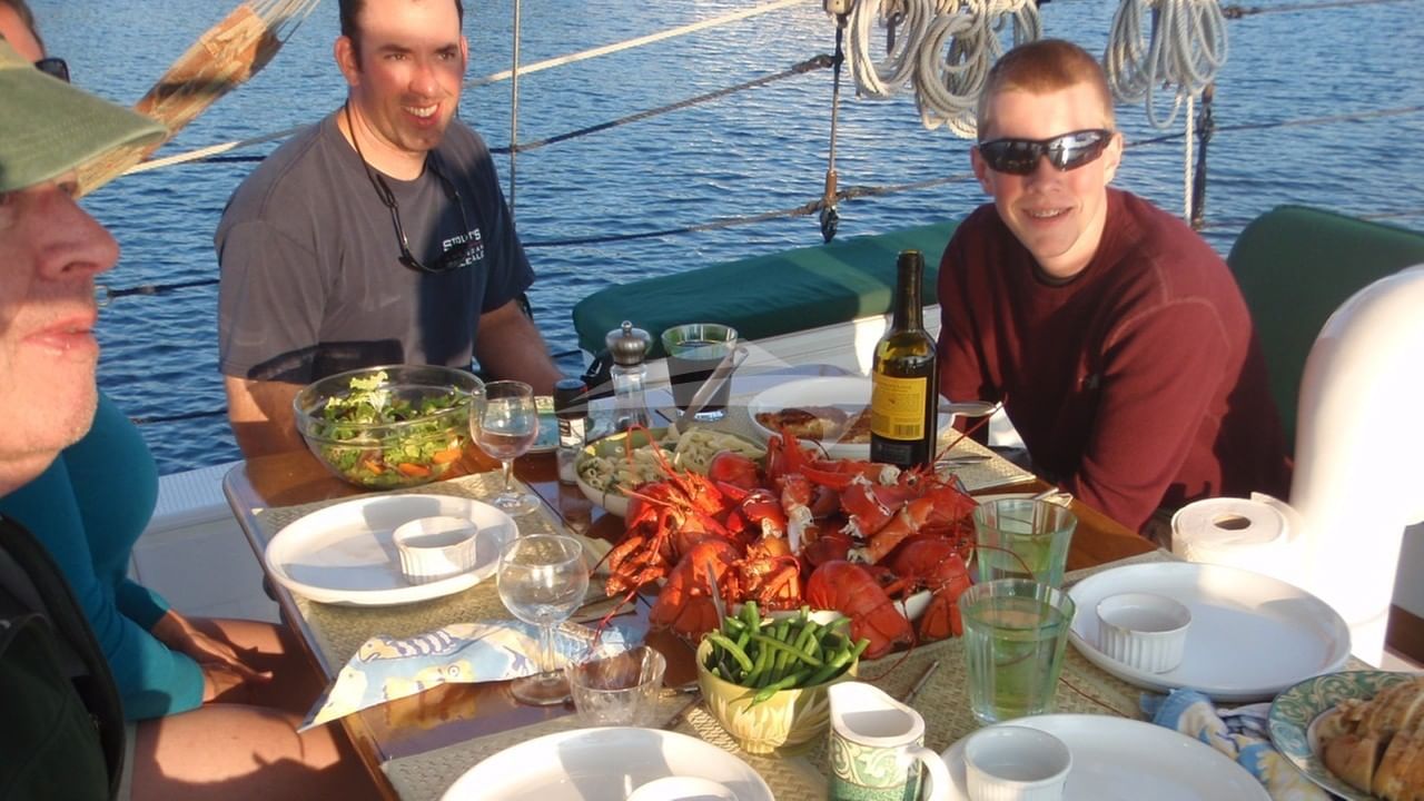 Chef & 1st MateBonnie grew up in Michigan, but shortly after graduating college joined the Peace Corps and headed to the South Pacific to Fiji, where she taught school on one of the outer islands for two years. From there she spent time traveling in Australia, and grew to love mountain climbing while living in Tasmania. While living in New Zealand, she taught school and spent her weekends mountain climbing. On her way back to the States she visited several South Pacific Islands and traveled extensively in South and Central America. She most recently worked in administration at an island school in Maine for 10 years, but prior to that she spent many years teaching, building houses, upholstering furniture, as well as fulfilling the role of homemaker and mother. She began sailing in the mid-80s and has been working as first mate and chef on their schooners since then. She works wonders in the galley, and also spends time on deck with the guests. She feels that each charter is special and she does everything possible to make each voyage a memorable one.