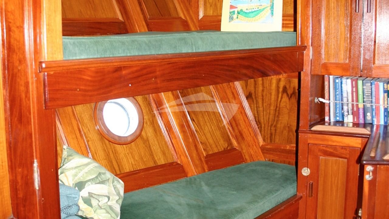 BONNIE LYNN can accommodate 8 guests in 3 cabins consisting of a primary suite with a double bed and en-suite bathroom facilities located forward, a cabin with 2 double beds and a single bed and en-suite bathroom facilities and a cabin with a double bed and en-suite bathroom facilities.