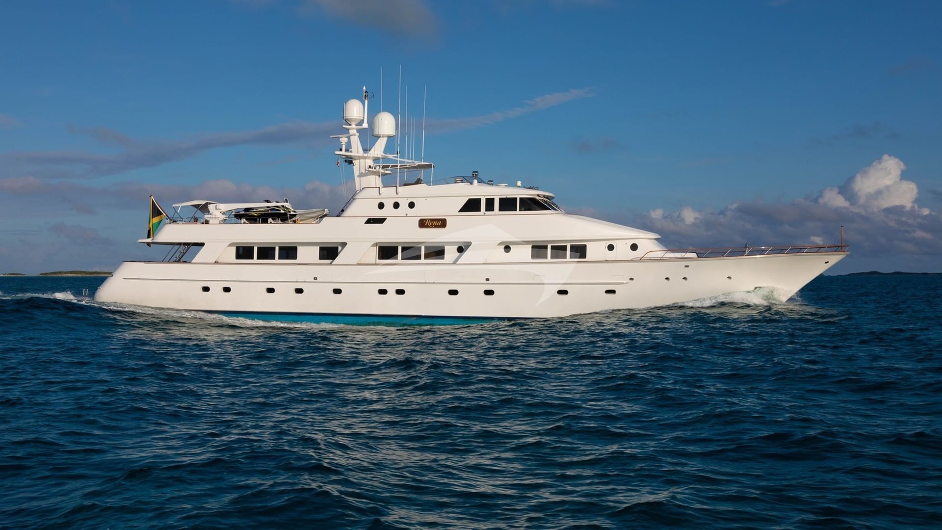 The 145ft / 44.2m RENA has been constructed with a grp hull and is powered by 2 x Caterpillar V - 12 3512D 1500HP with a cruising speed of 13 knots and a top speed of 15 knots.