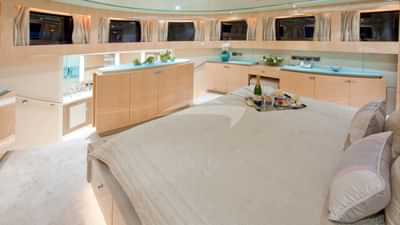 INCEPTION can accommodate 8 sleeping guests on board in 5 cabins, with the ability to cruise with up to 12 guests and entertain groups up to 12 guests while at anchor or moored at a marina.