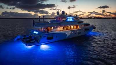 The 103ft / 31.4m INCEPTION has been constructed with a grp hull and is powered by 2x MTU 16V2000 M91, 2000HP with a cruising speed of 19 knots and a top speed of 23 knots.