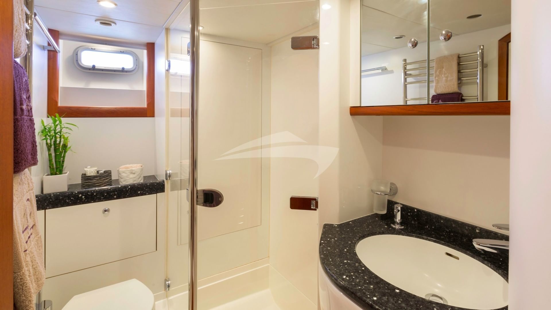 MAGRATHEA can accommodate 6 guests in 3 cabins consisting of a primary suite with a double bed and en-suite bathroom facilities, a cabin with a double bed and en-suite bathroom facilities and a cabin with a twin bed .