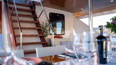 Amenities on board for the charter guests include Air Conditioning, Indoor audio system, Local TV, Satellite Communications, Sun Deck, Swim platform, TV saloon and Wi-Fi.