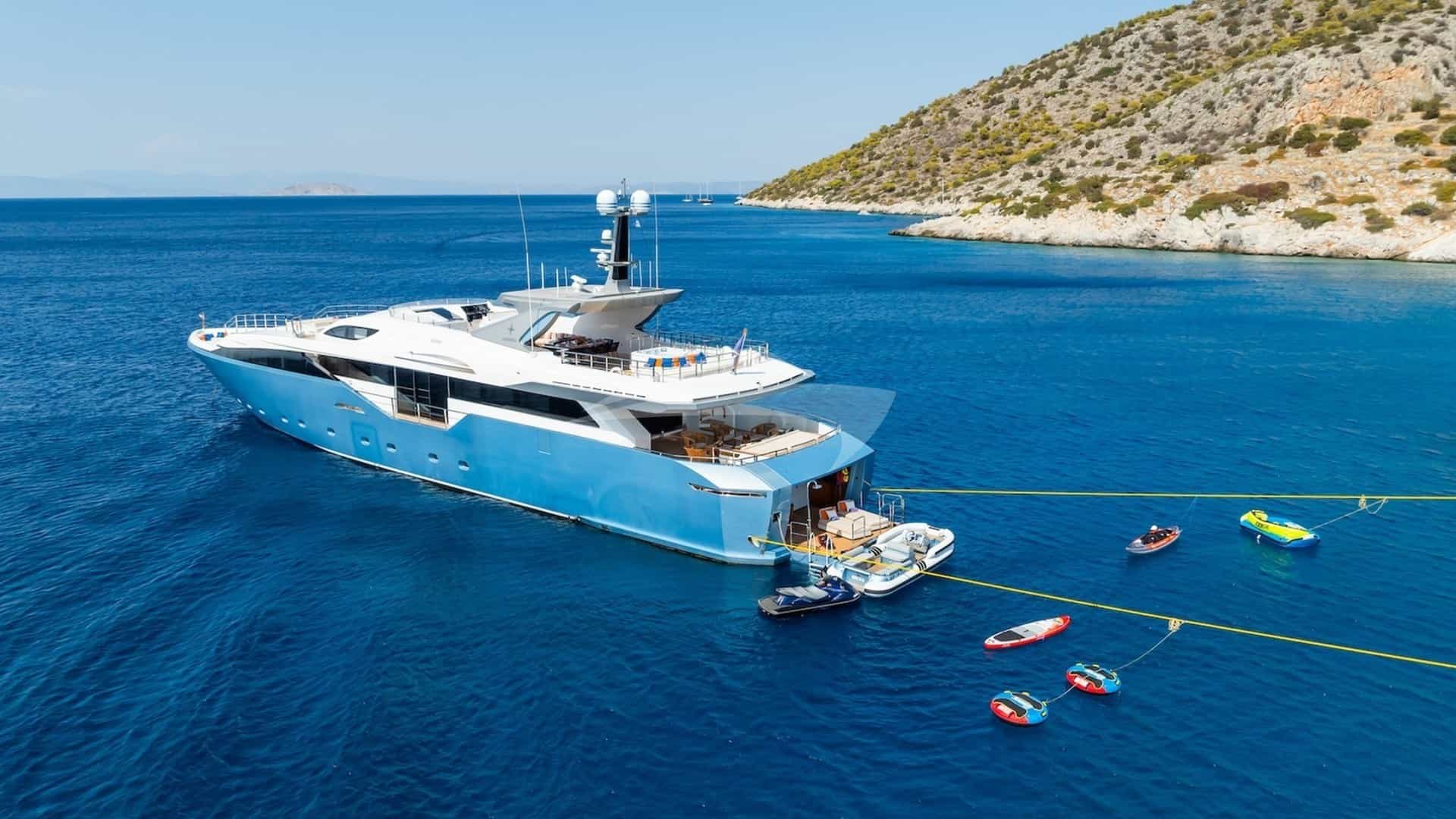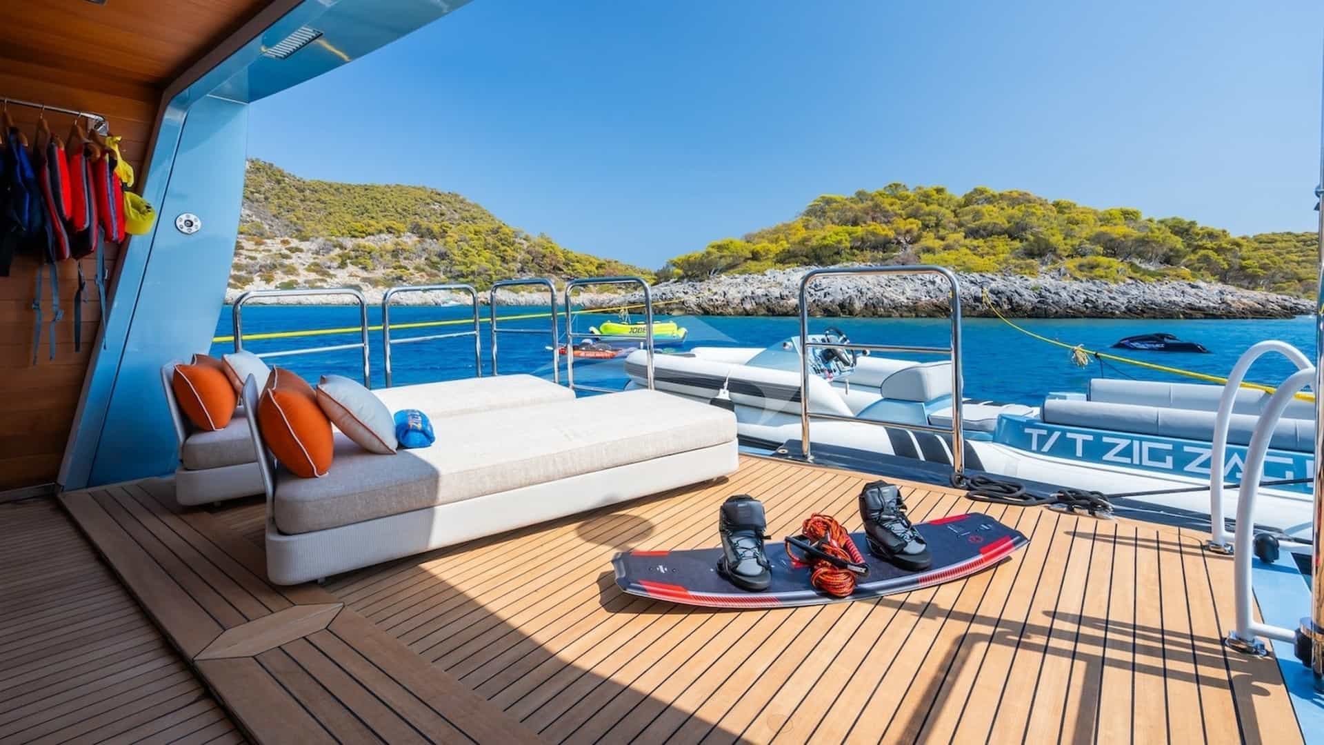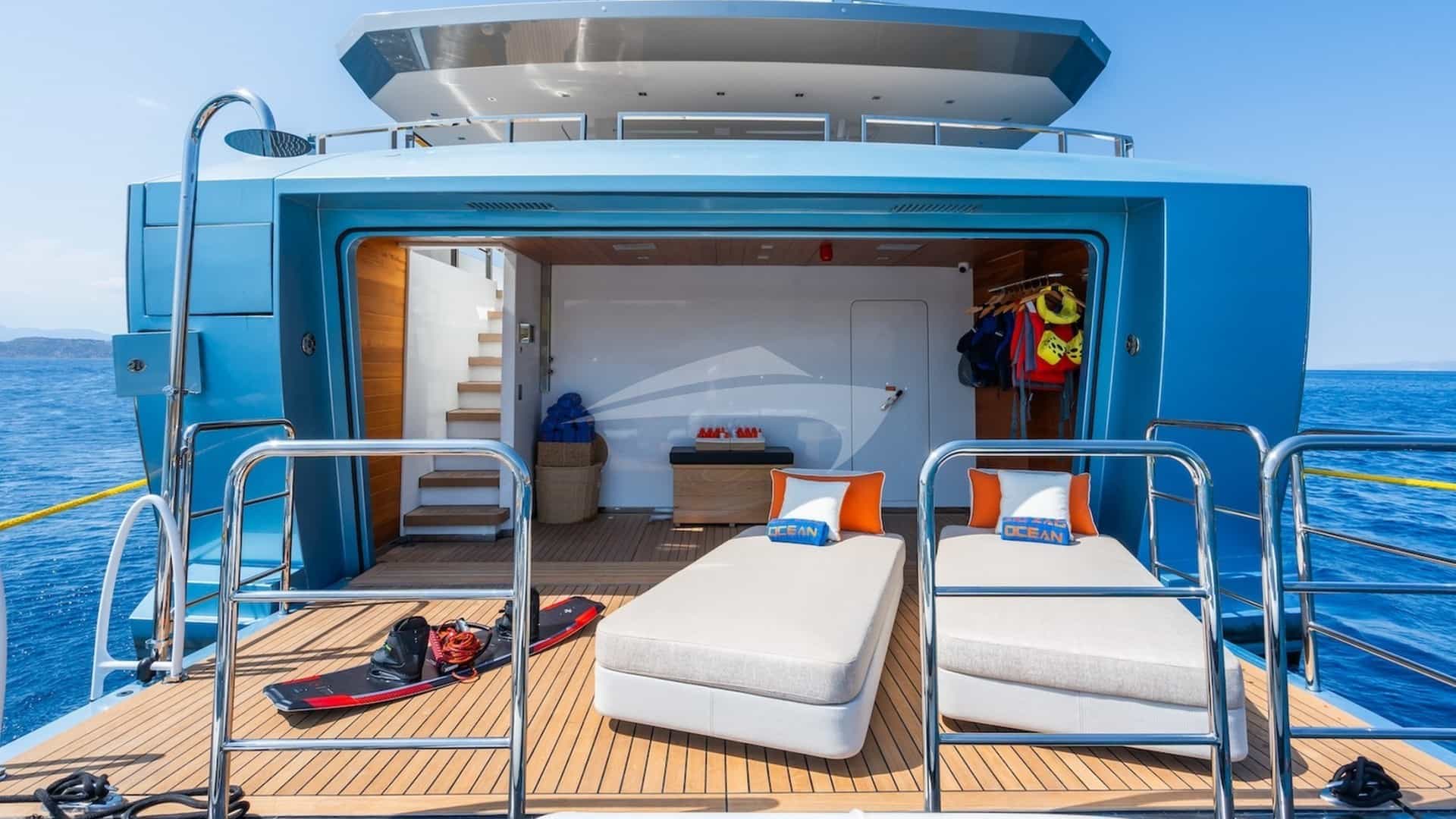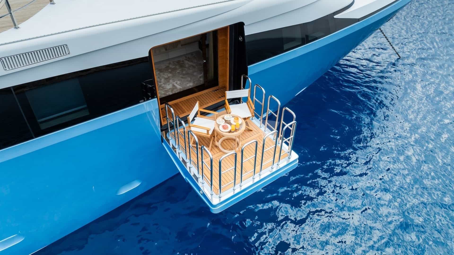 BLUE MOON is also equipped with a wide range of water toys and features an expansive beach club, offering a perfect combination of style, comfort, and performance for an exceptional charter experience.
