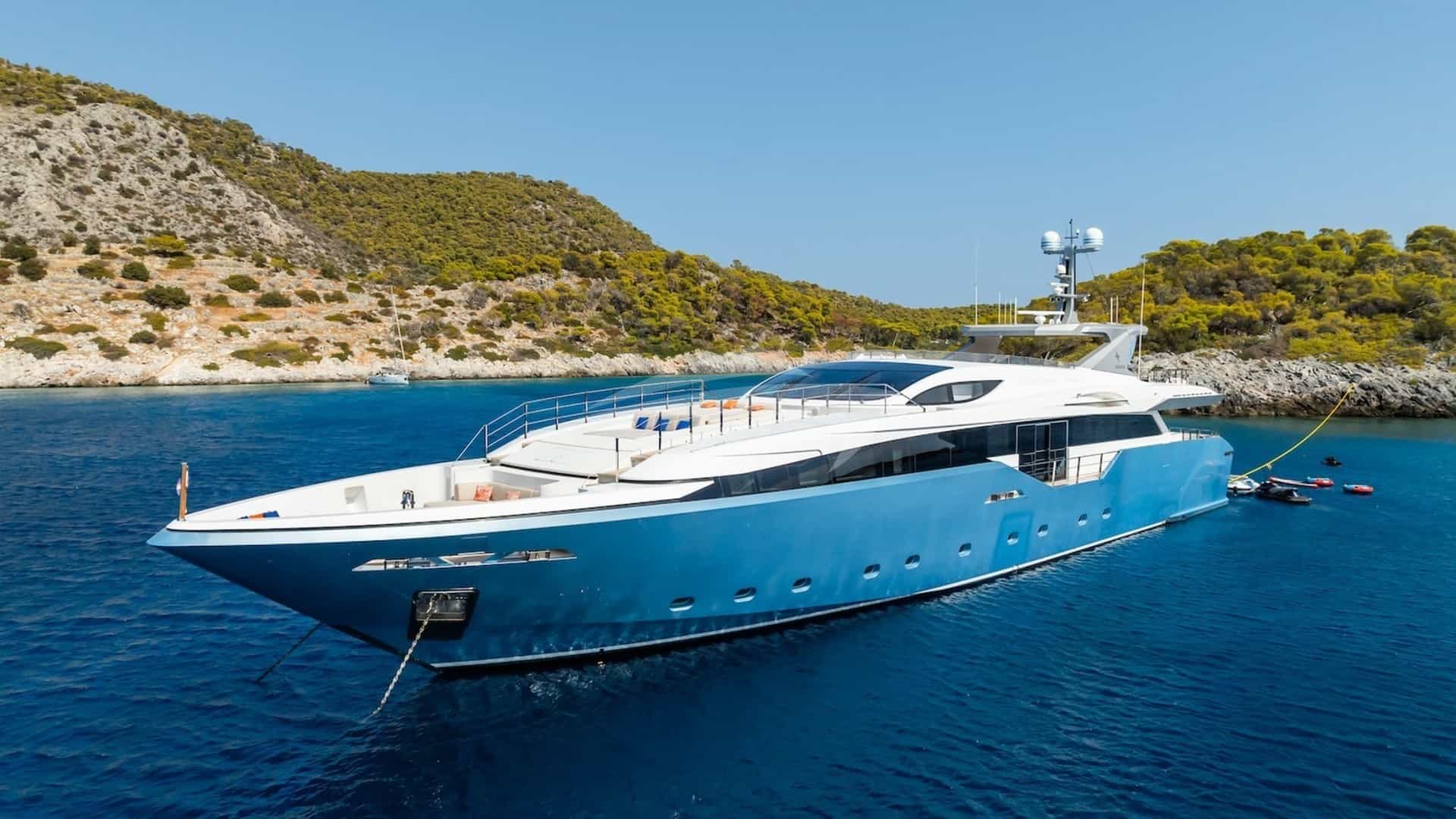 BLUE MOON is an extraordinary superyacht, ideal for those desiring a blend of adventure and luxury in their charter. This vessel was constructed by Admiral Yachts at the Marina Di Carrara ’shipyard, in which she has been meticulously maintained. Her striking metallic blue hull and sleek design offer both visual appeal and exceptional functionality. Featuring an aluminum hull and superstructure,