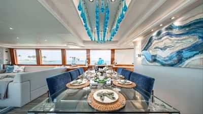 KEMOSABE can accommodate 8 sleeping guests on board in 4 cabins, with the ability to cruise with up to 12 guests.