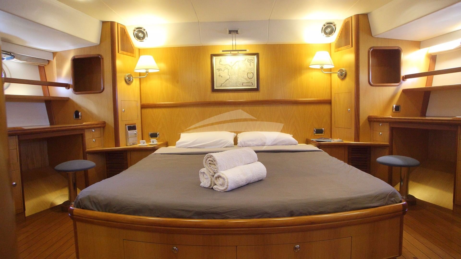 CENTURION can accommodate 6 guests in 3 cabins consisting of a primary suite with a king size bed and en-suite bathroom facilities, a cabin with a double bed and en-suite bathroom facilities and a VIP suite with a double bed and en-suite bathroom facilities.