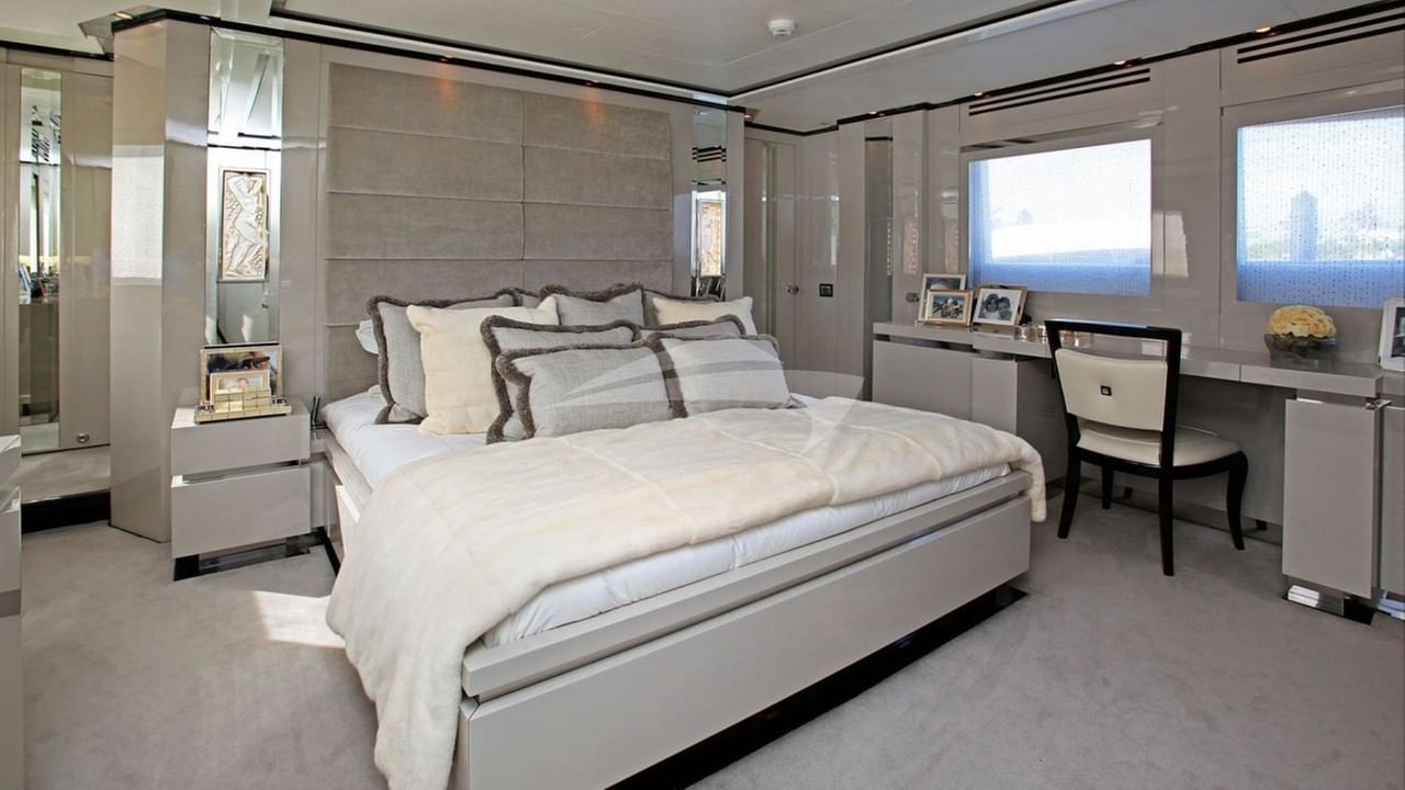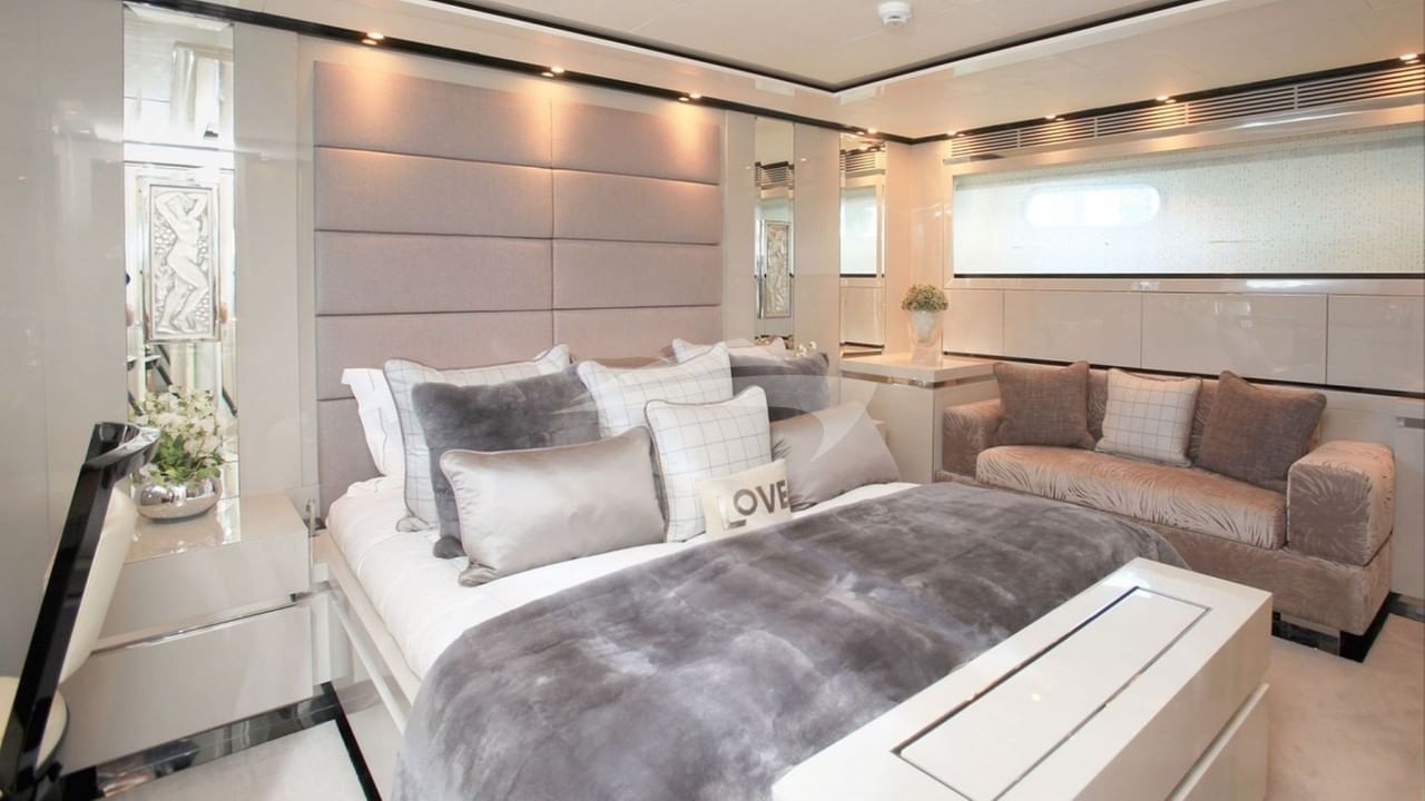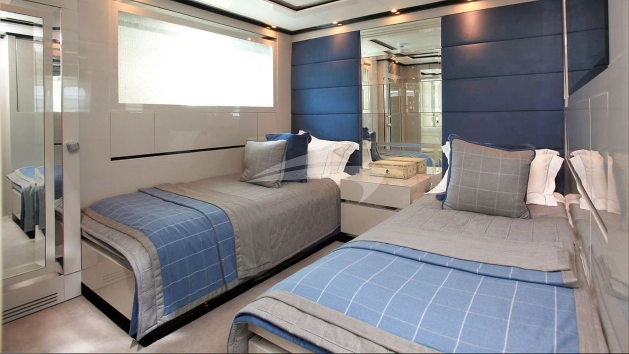 SEALYON 37 can accommodate 9 guests in 4 cabins consisting of a cabin with a twin bed and en-suite bathroom facilities, a primary suite with a king size bed and en-suite bathroom facilities, a cabin with a twin bed and a pullman bed and en-suite bathroom facilities and a cabin with a king size bed and en-suite bathroom facilities.
